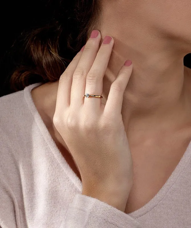 Kanalizirajte dijamantnu eleganciju ovom perfektnom teksturom izrađenom od 18kt žutog zlata s centralnim sjajnim dijamantnim kamenom. Naručite već danas svoju dozu glamura s dostavom na kućnu adresu!