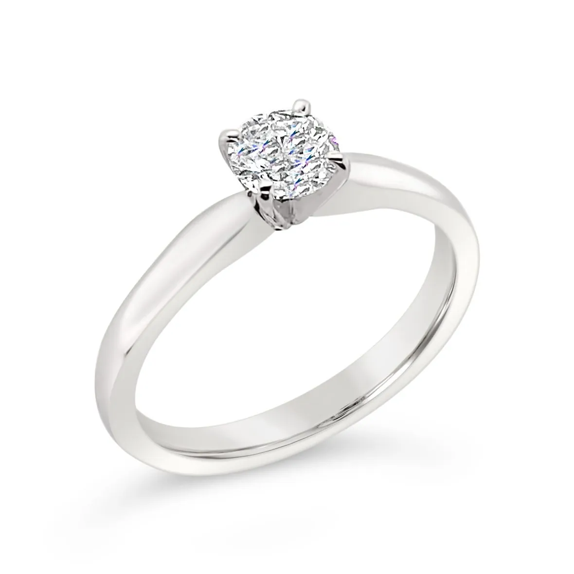 Kanalizirajte dijamantnu eleganciju ovom perfektnom teksturom izrađenom od 18kt bijelog zlata s centralnim sjajnim dijamantnim kamenom dimenzije 0,46ct. Naručite već danas s dostavom na kućnu adresu!