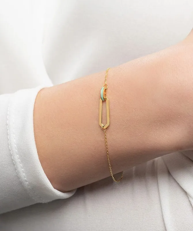 Azure zlatna narukvicu obilježava poseban dizajn i tirkizno plava boja u kombinaciji s bojom sunca. Ostavlja snažan dojam u svakoj odjevnoj kombinaciji. Azure zlatna narukvica izrađena je od 14 kt žutog zlata. Naručite već danas putem web shopa Zlatarne Dodić. Kombinirajte uz istoimenu narukvicu i naušnice.