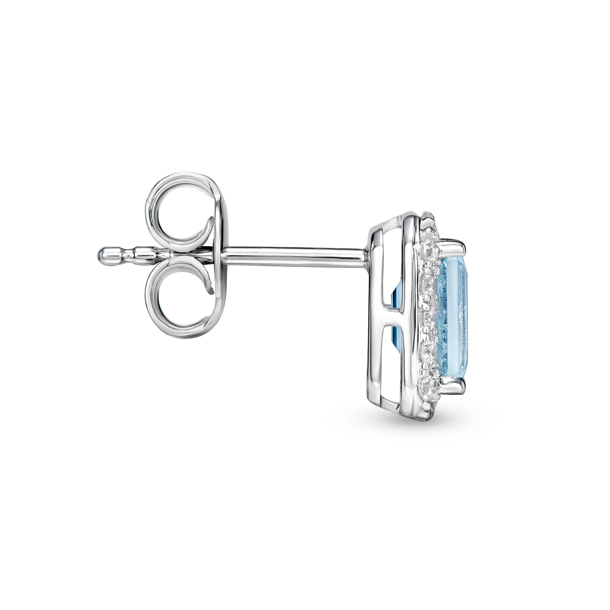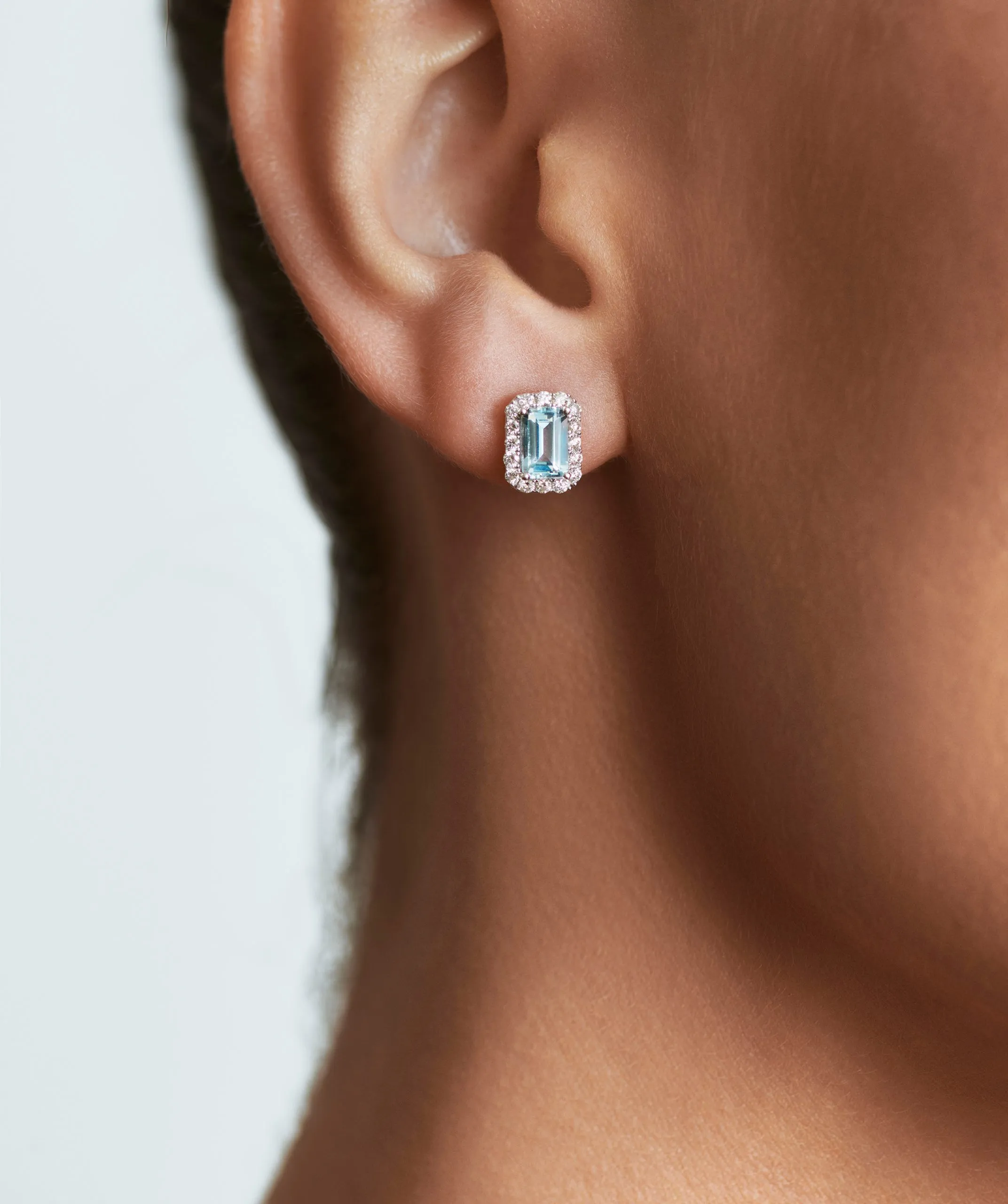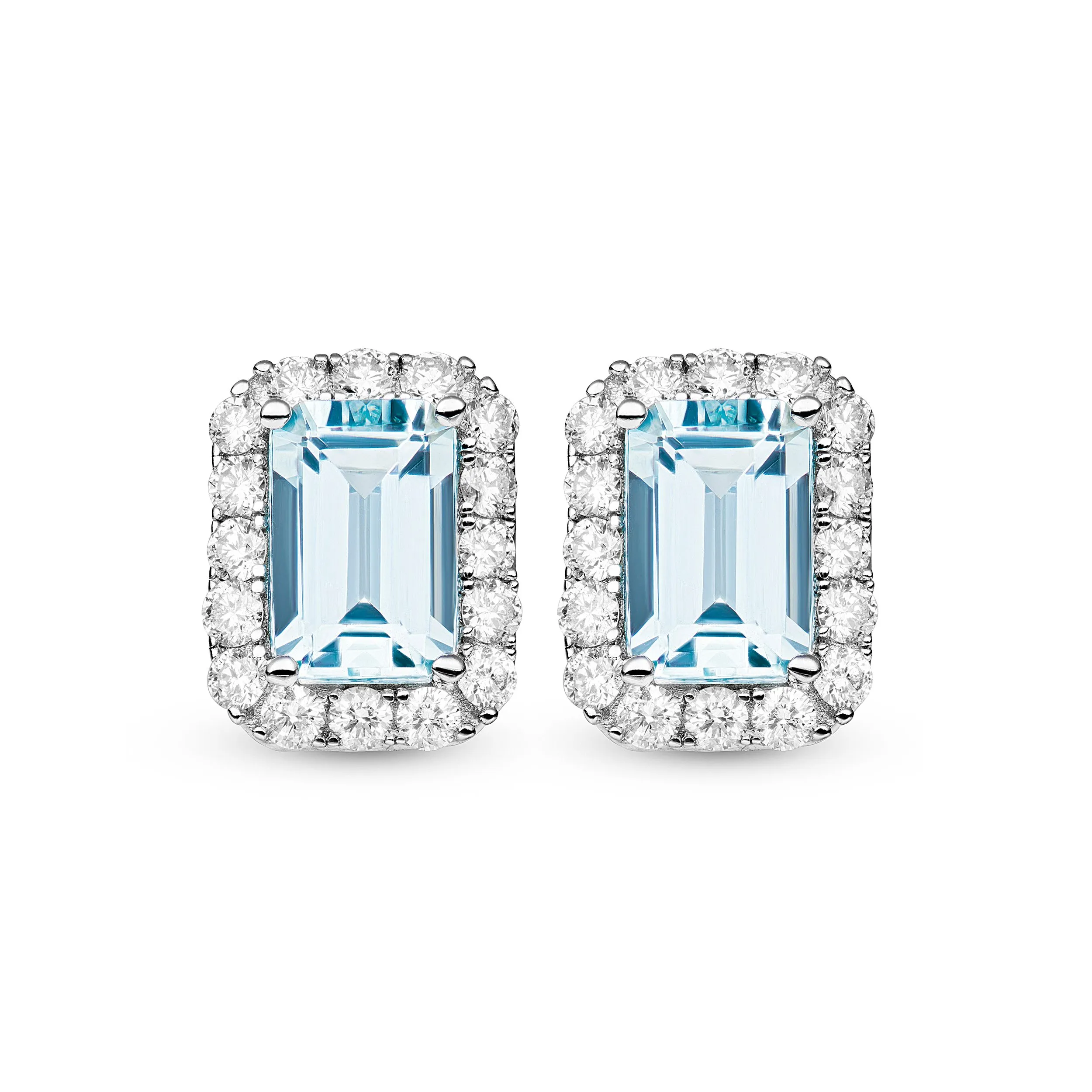 Azure zlatne naušnice od 18-karatnog zlata s akvamarinom i dijamantima savršen su izbor za svaki trenutak. Akvamarin u kombinaciji s dijamantima stvara divnu harmoniju boja, donoseći svježinu i luksuz u svaki izgled. Dodajte dašak glamura svom stilu uz ovu bezvremensku kombinaciju dragocjenih kamena.