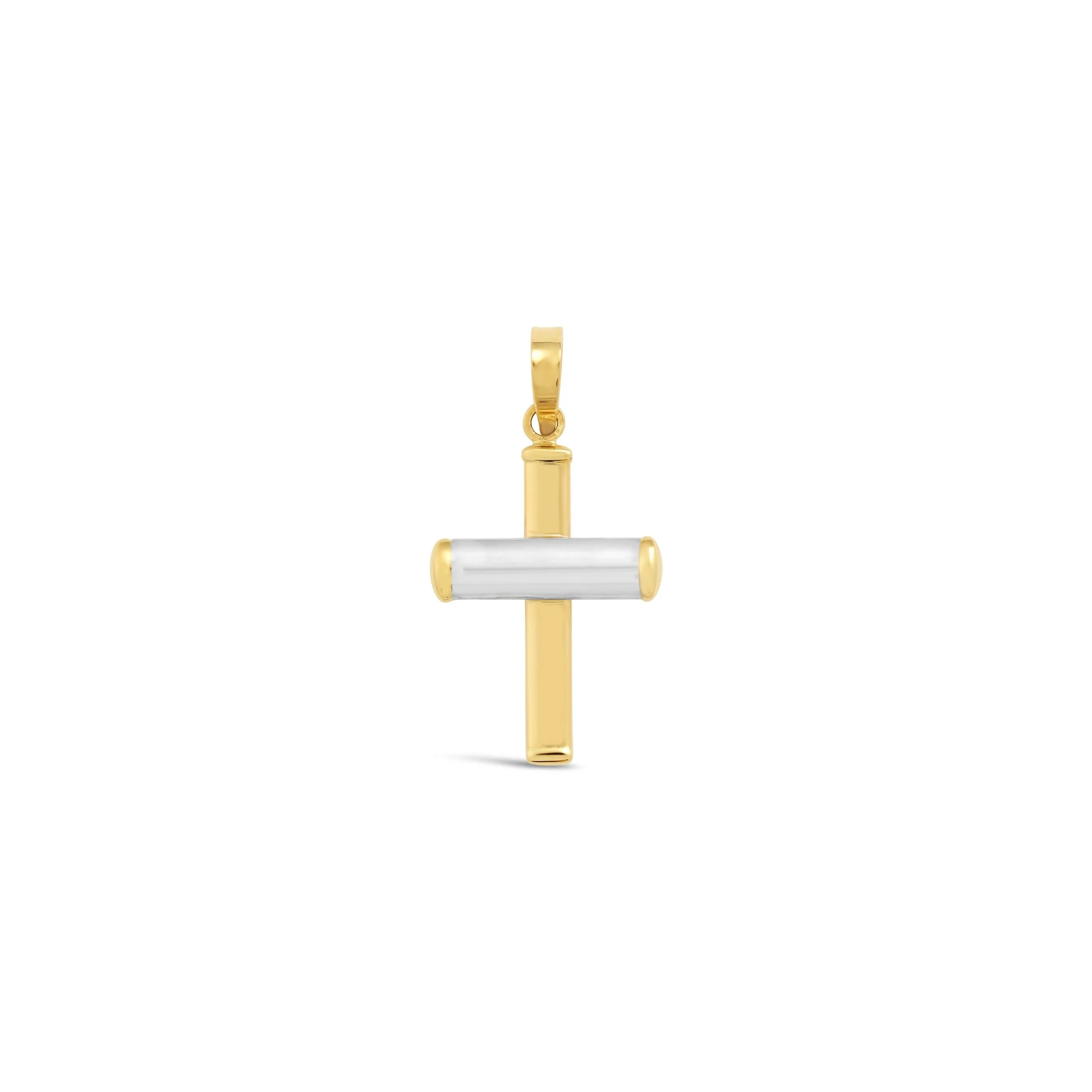 Broad Cross zlatni lančić izrađen je od 14 kt žutog zlata u obliku križa, čija je poprečna pločica izrađena od 14 kt bijelog zlata. Broad Cross zlatni privjesak savršeno pristaje uz Dodić zlatni lančić prema Vašem izboru. Dimenzije privjeska: 3 cm. Poklonite ovaj privjesak dragoj osobi kao uspomenu na Vas i na primanje Svetog sakramenta. Broad Cross zlatni privjesak stići će na Vašu adresu elegantno i precizno zapakiran u roku od 2 radna dana.