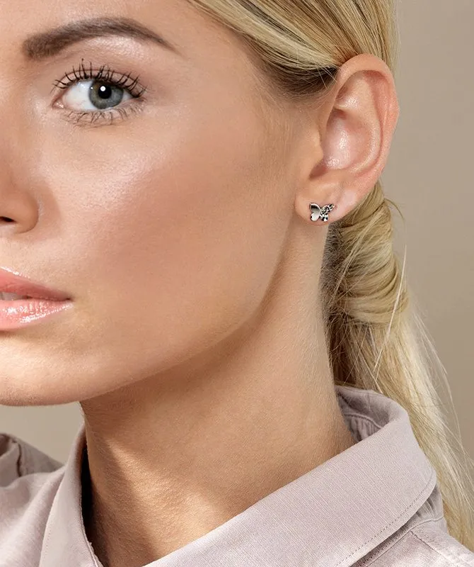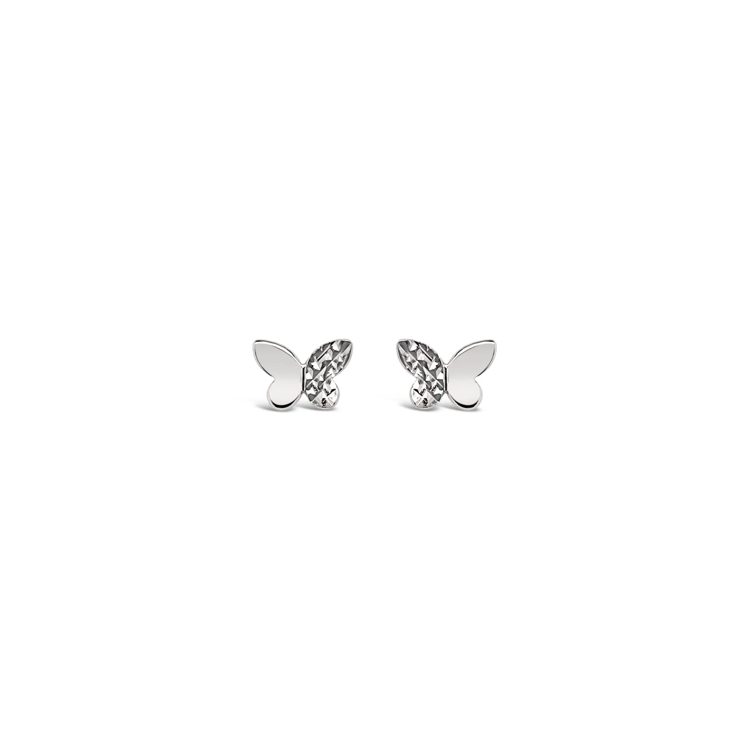 S jedne strane jednostavni, s druge strane namreškani nježni leptiri na Vašim ušima, simboliziraju naše životne letove! Butterflies naušnice od 14 kt bijelog zlata. Dimenzija 9,5 x 6,5mm.