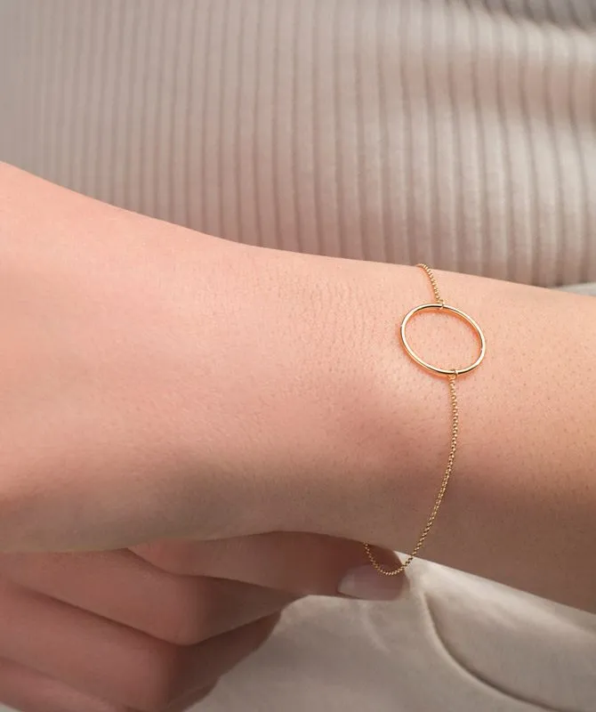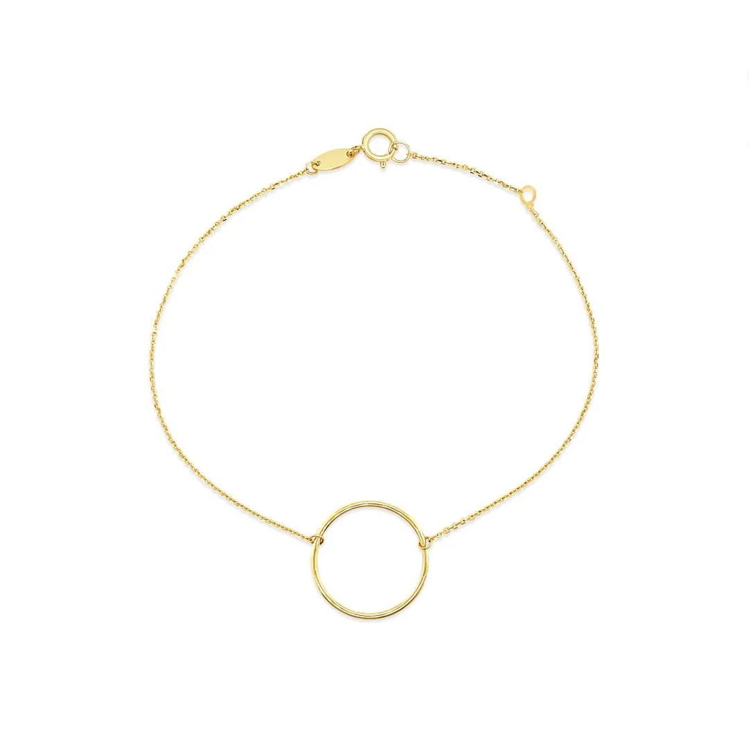 Circle Touch zlatna narukvica decentna je narukvica izrađena od 14 kt žutog zlata. Kombinirajte je uz Dodić Circle Touch zlatnu ogrlicu. Dimenzije narukvice: duljina: 16+2 cm, promjer kruga 1,5 cm.