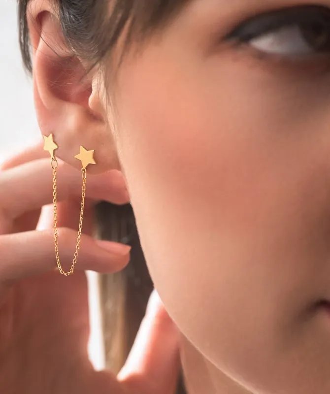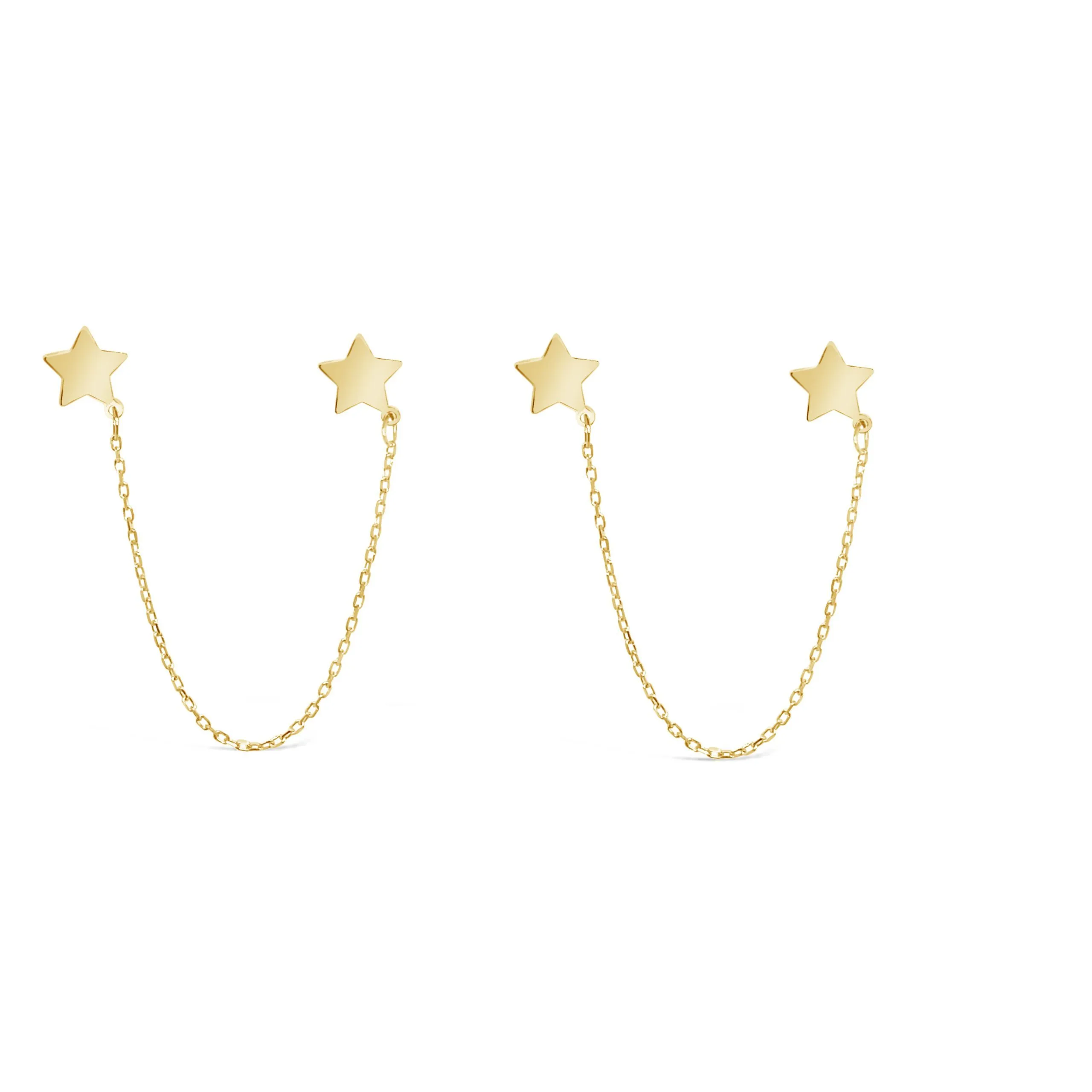Upotpunite svoje svakodnevne outfite s Double Stars naušnicama. Izrađene su od 14 kt žutog zlata. Moderni dizajn ovih visećih naušnica nalazi se u dvije zvijezdice koje spaja viseći lanac.