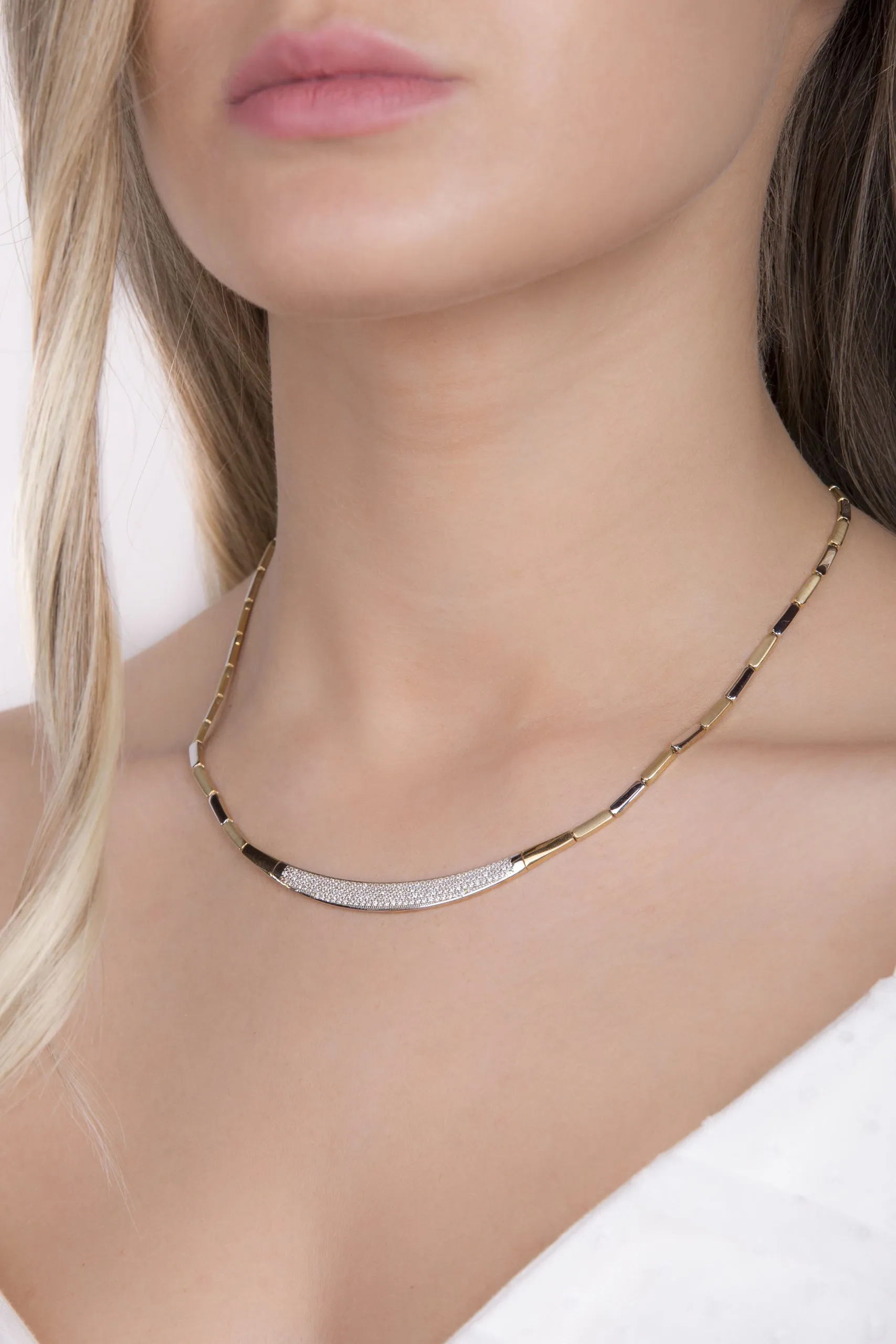 Ako tražite poklon za svoju bolju polovicu, pokažite joj ljubav ovom elegantnom ogrlicom izrađenom od 14 kt bijelog i žutog zlata. Ogrlica je na kraju ukrašena blještavim cirkonima zbog kojih će dodatno istaknuti vrat svake žene. Naručite već danas dostavu na kućnu adresu.