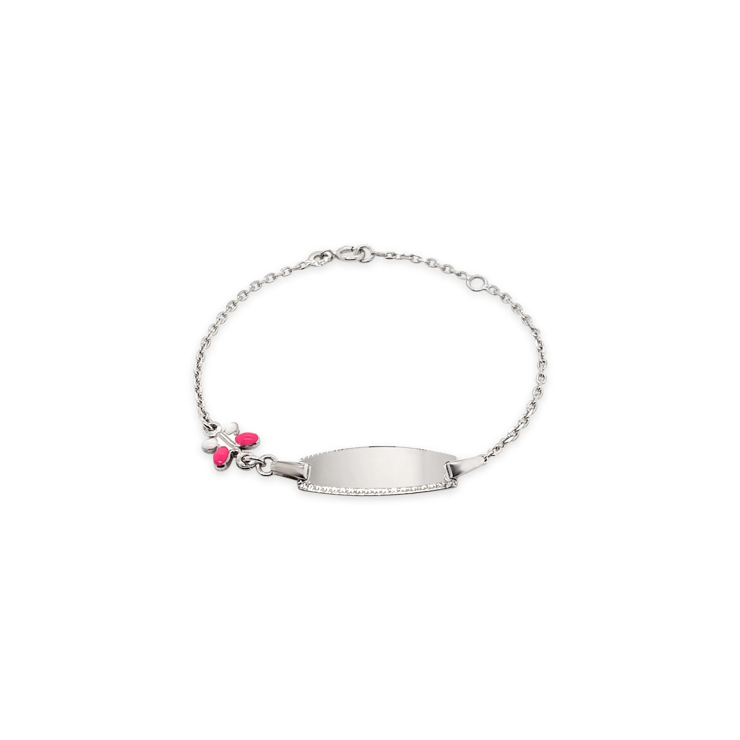 Nježna dječja zlatna narukvica koja budi osjećaj slobode i poleta. 14kt bijelo zlatno izvedeno u savršenom nizu sitnih ringova, dužine 14cm, krasi čvrsti privjesak pogodan za graviranje. Simbol šarenog leptira zaokružuje besprijekorni dizajn. Dostava na kućnu adresu.