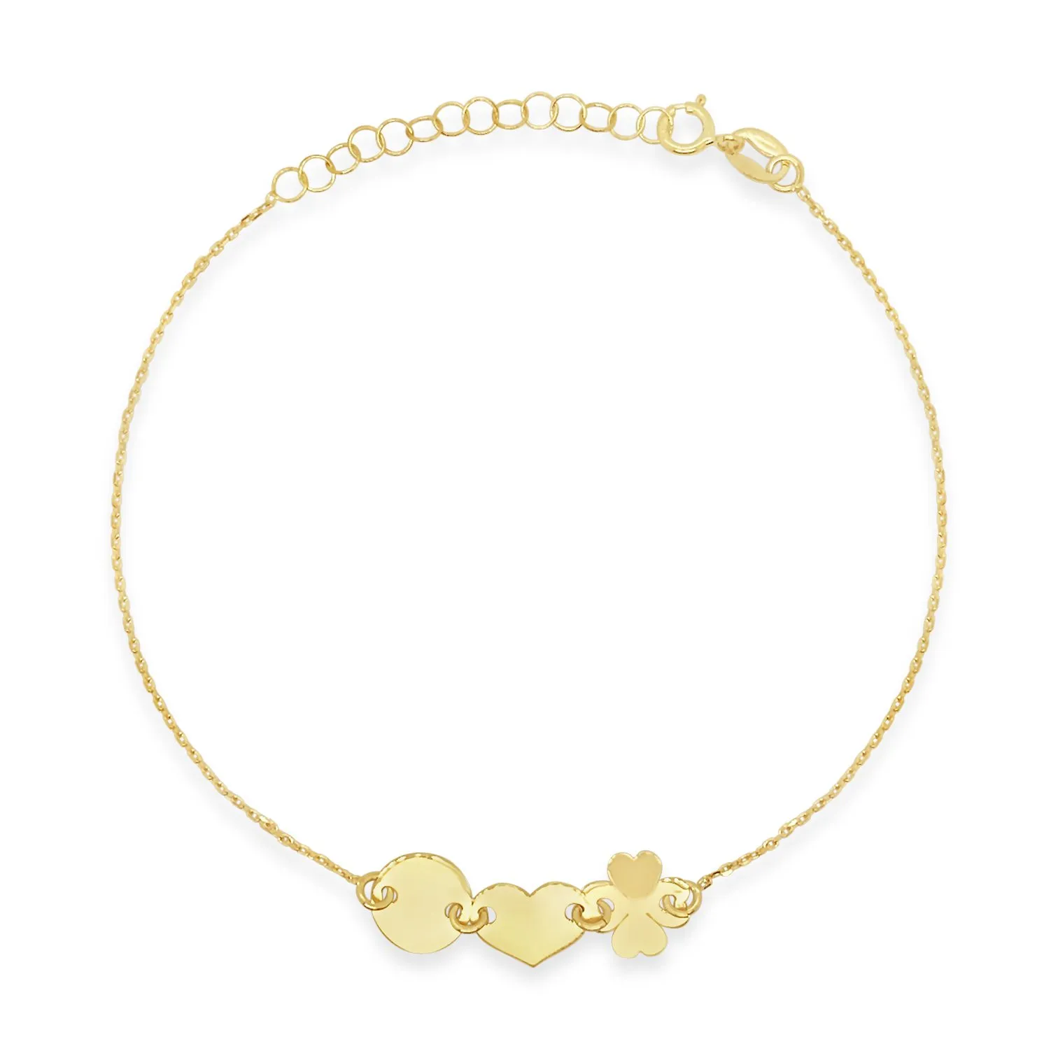 Fortune narukvica odličan je izbor da nekome pokažete svoju ljubav i poželite mu da ga u životu prati sreća. Ovu predivnu narukvicu, duljine do 17+3cm, izrađenu od 14kt žutog zlata krase privjesci u obliku kruga, srca i djeteline s četiri lista te joj daju posebnost i otkrivaju vaše iskrene dobre želje. Naručite već danas s dostavom na kućnu adresu.