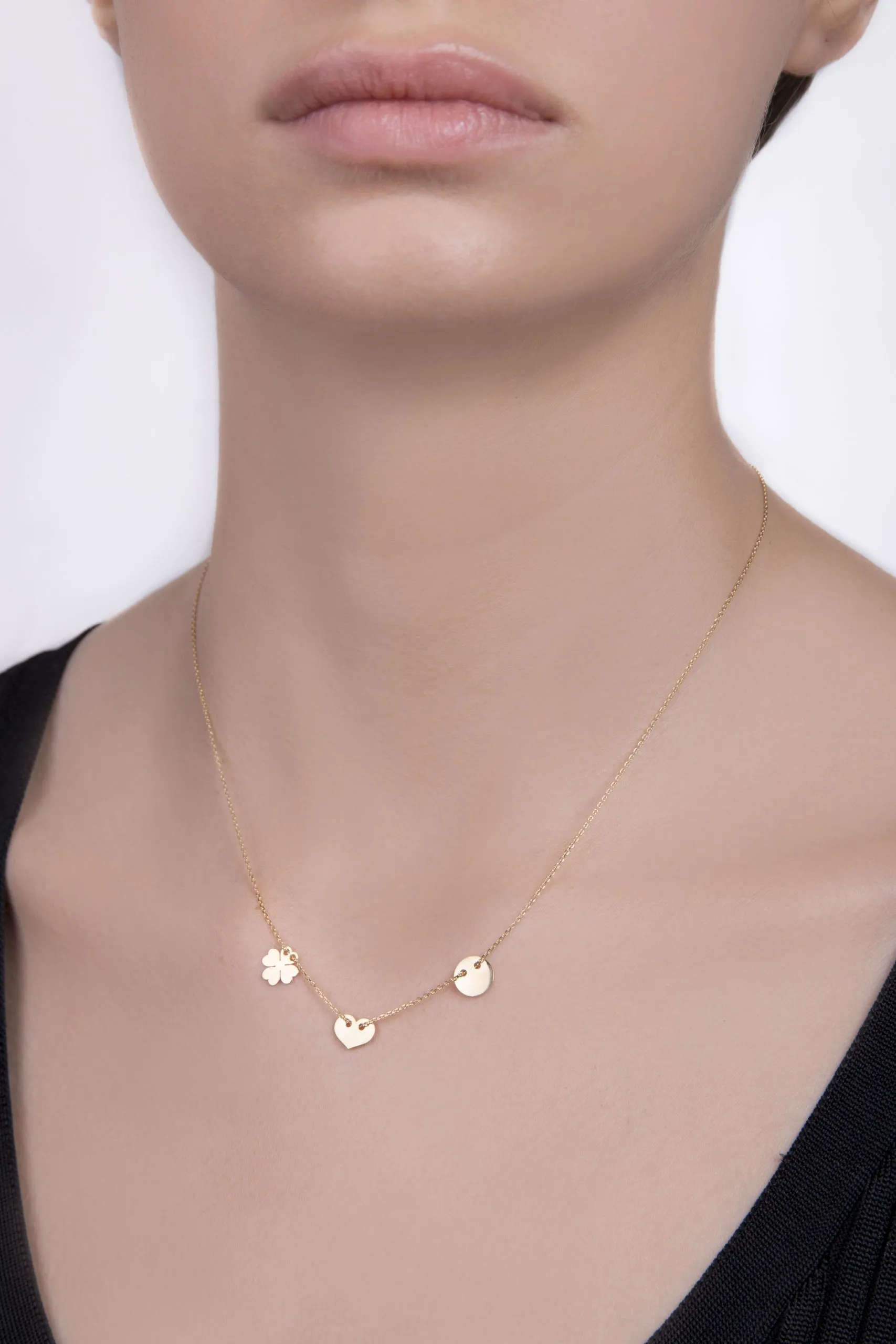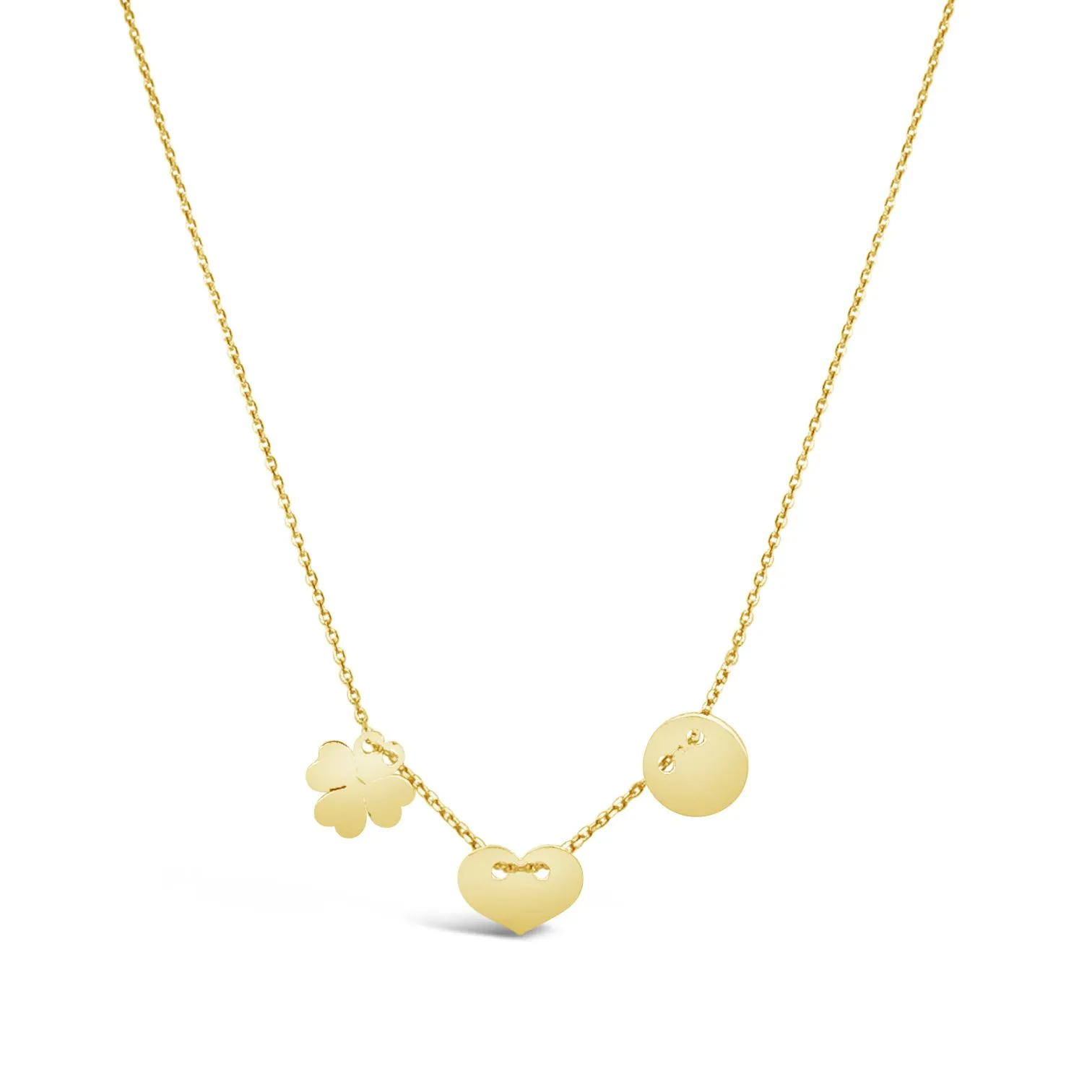 Fortune zlatna ogrlica odličan je izbor da nekome pokažete svoju ljubav i poželite mu da ga u životu prati sreća. Ova predivna narukvica, duljine do 42+3cm, izrađena je od 14kt žutog zlata. Privjesci u obliku kruga, srca i djeteline s četiri lista joj posebnost i otkrivaju Vaše iskrene dobre želje. Naručite već danas s dostavom na kućnu adresu.
