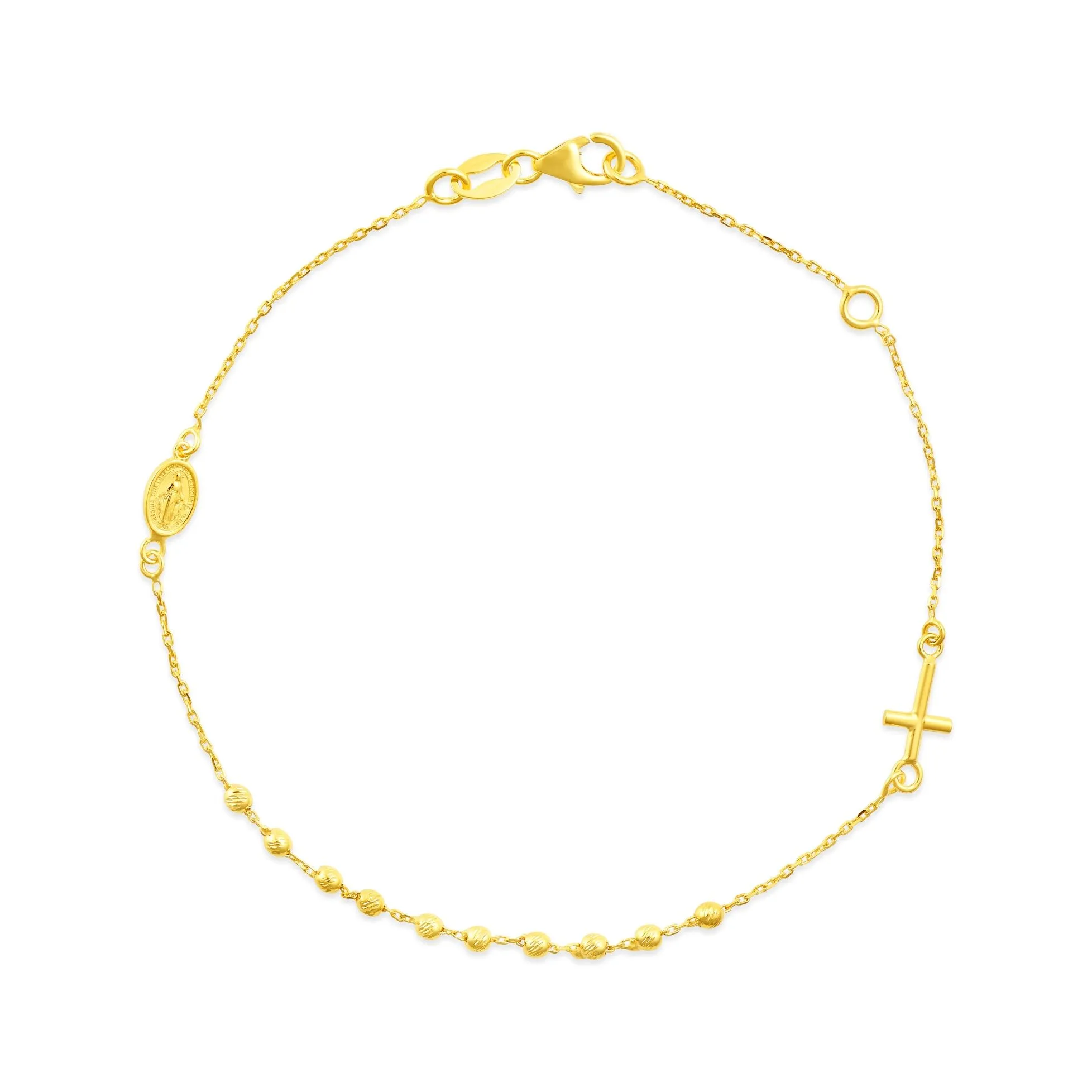 Holy Radiance preksrasna zlatna narukvica s kombiniranim vjerskim simbolima, donosi duhovnu svjetlost u svaki vaš dan. Njezin jedinstveni dizajn ne samo da krasi zapešće, već i podsjeća na važne vrijednosti i vjerovanja.