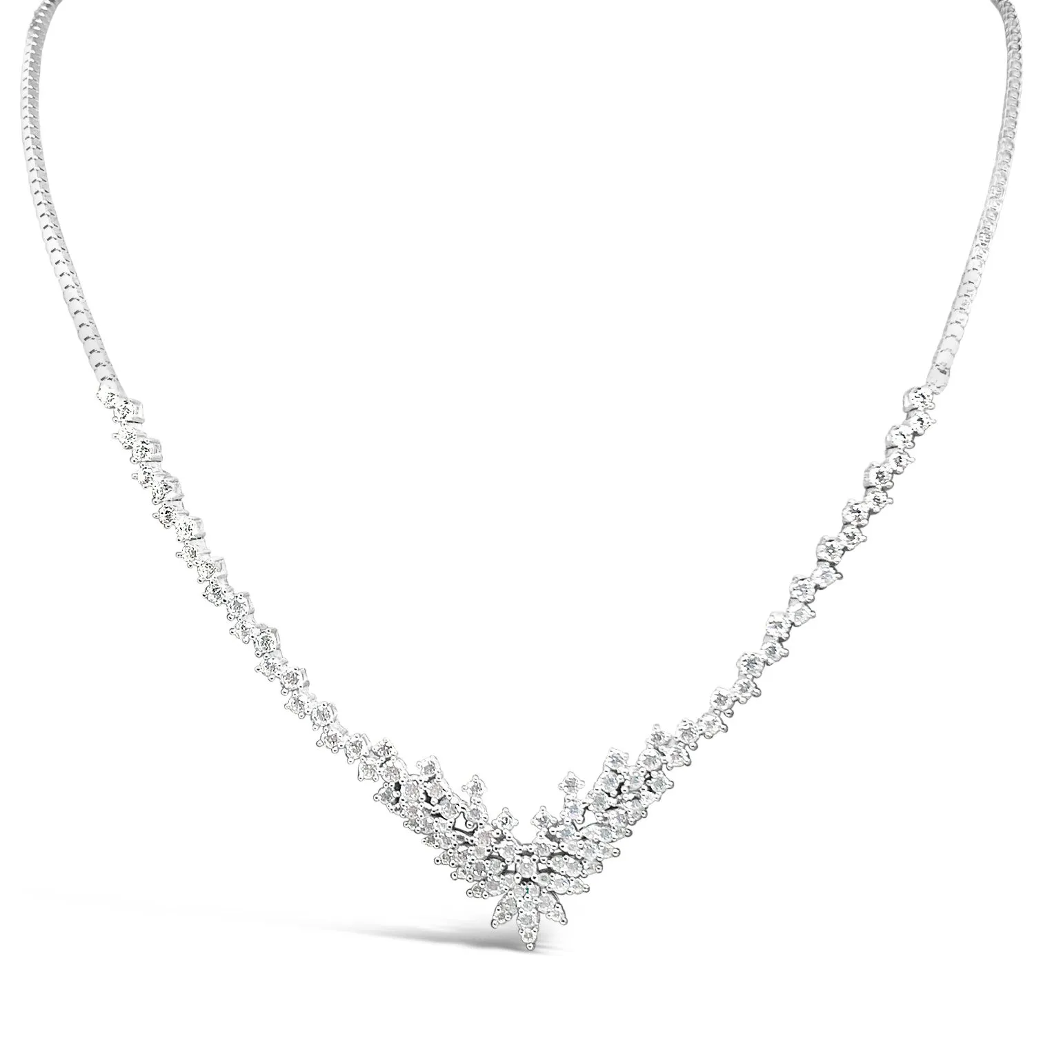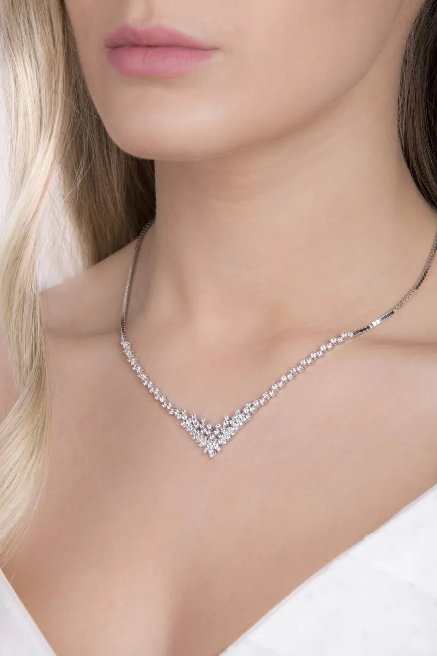 Elegantna ogrlica izrađena od bijelog zlata savršeno će se uklopiti u svaki svečaniji outfit. Ogrlica je na krajevima ukrašena blještavim cirkonima. Možete ju već danas naručiti s dostavom na kućnu adresu.