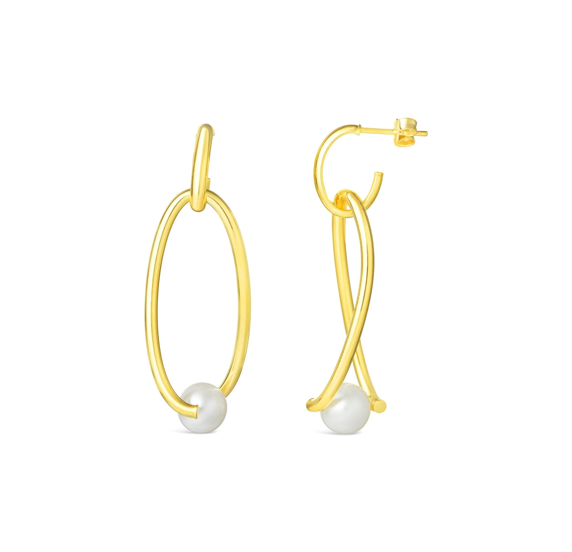 Infinite Glow zlatne naušnice s visećim kružnim oblikom i akoya biserom nude savršen spoj moderne estetike i klasične elegancije za svaki dan.