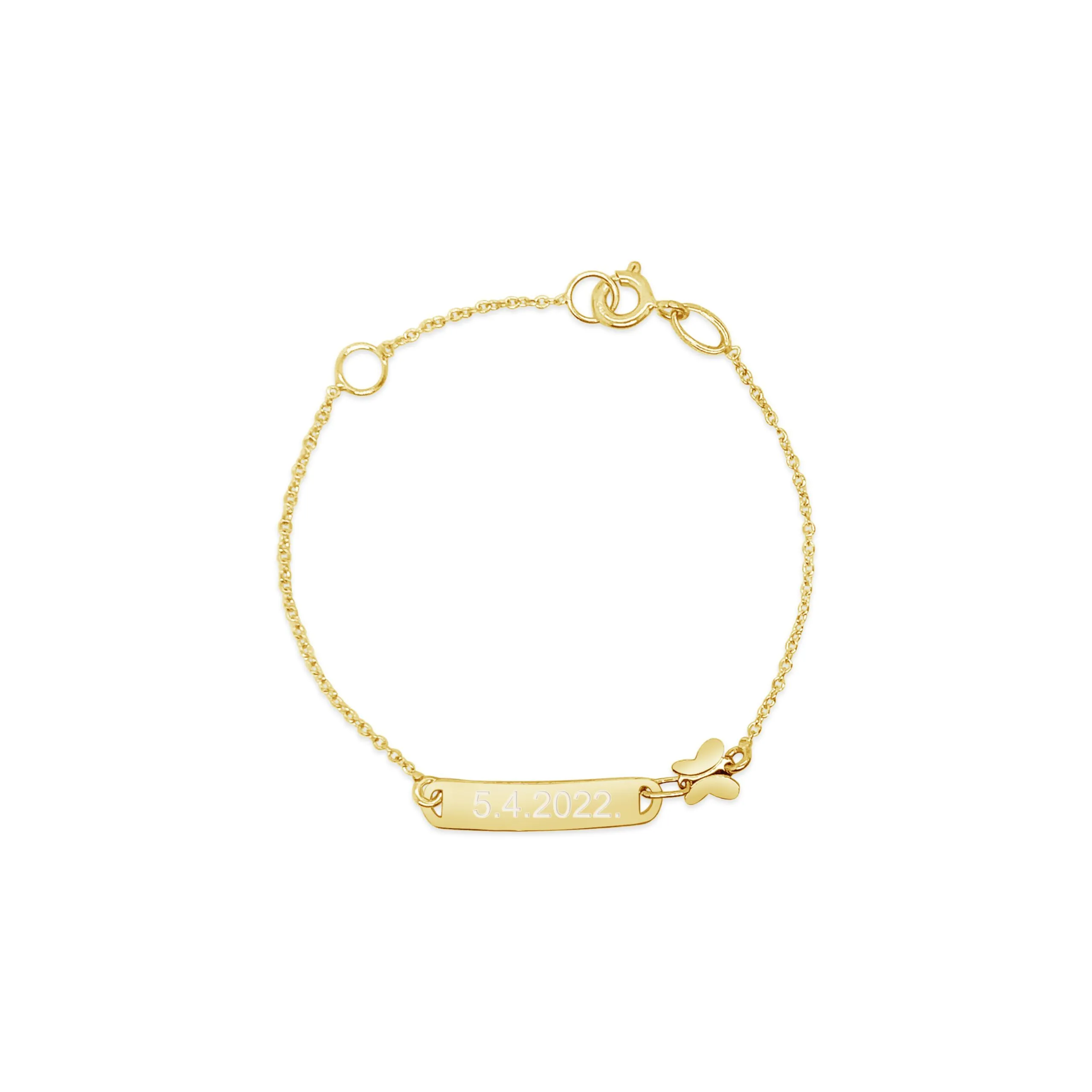 Za posebne prilike poklonite narukvicu izrađenu od 14 kt žutog zlata. Možete ugravirati datum ili ime za uspomenu. Narukvica je ukrašena privjeskom leptira te je prikladna za sve vedrog i veselog duha. Naručite dostavu na kućnu adresu.