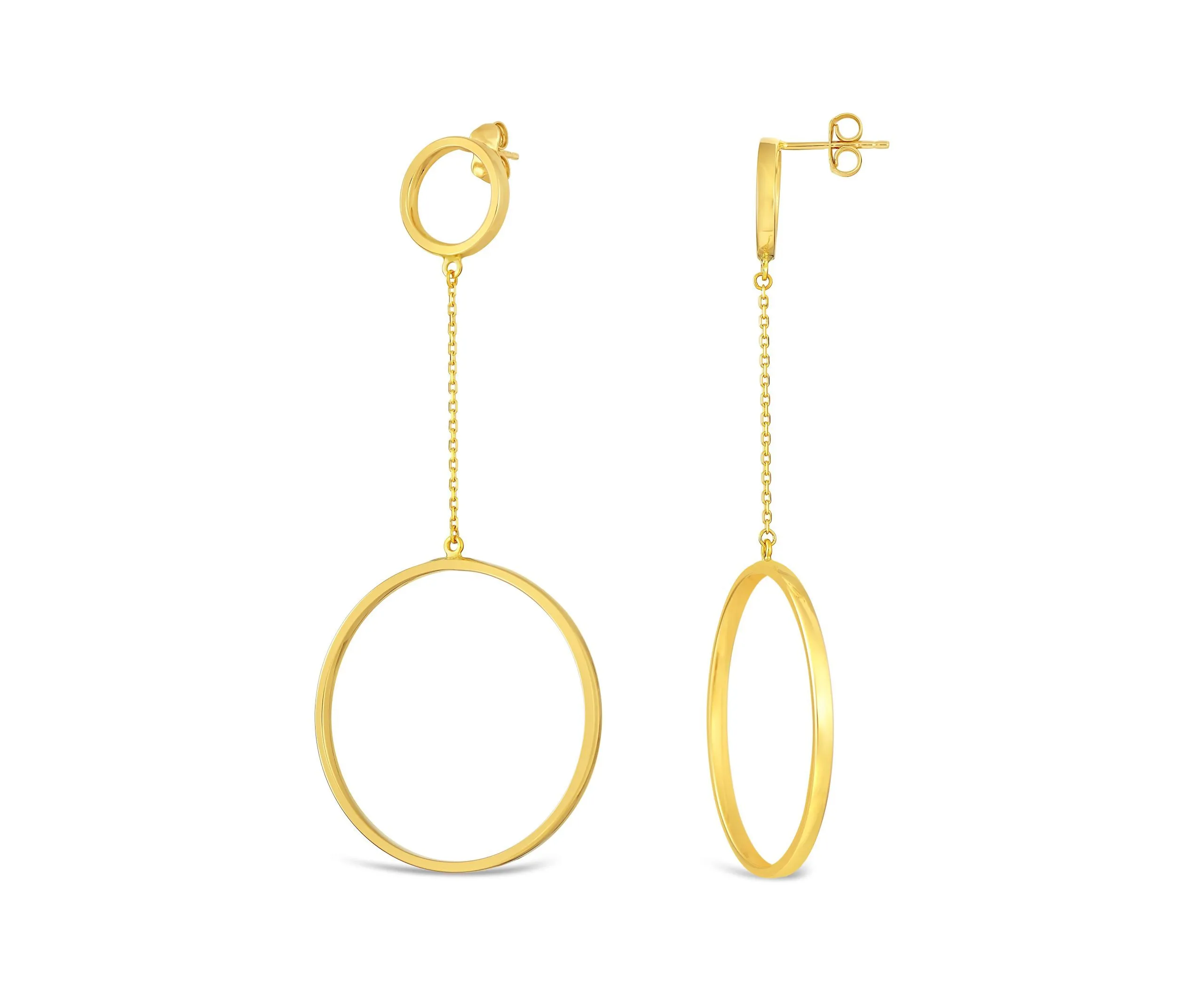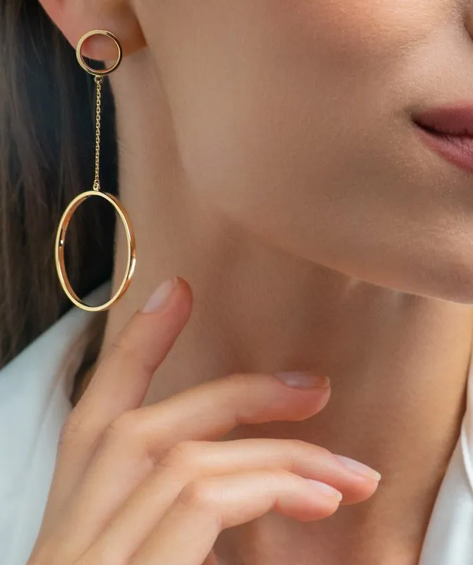 Minimalist Rounds zlatne naušnice elegantne su i jednostavne naušnice čiji manji krug nježno nosi veći, stvarajući sofisticiranu igru oblika. Ovaj dizajn spaja klasičnu eleganciju sa suptilnom inovacijom, naglašavajući sklad oblika i profinjenost. Neka ove naušnice, izrađene od 14kt žutog zlata u dužini od 7 cm, budu tvoj izbor za suptilan i elegantan dodatak.