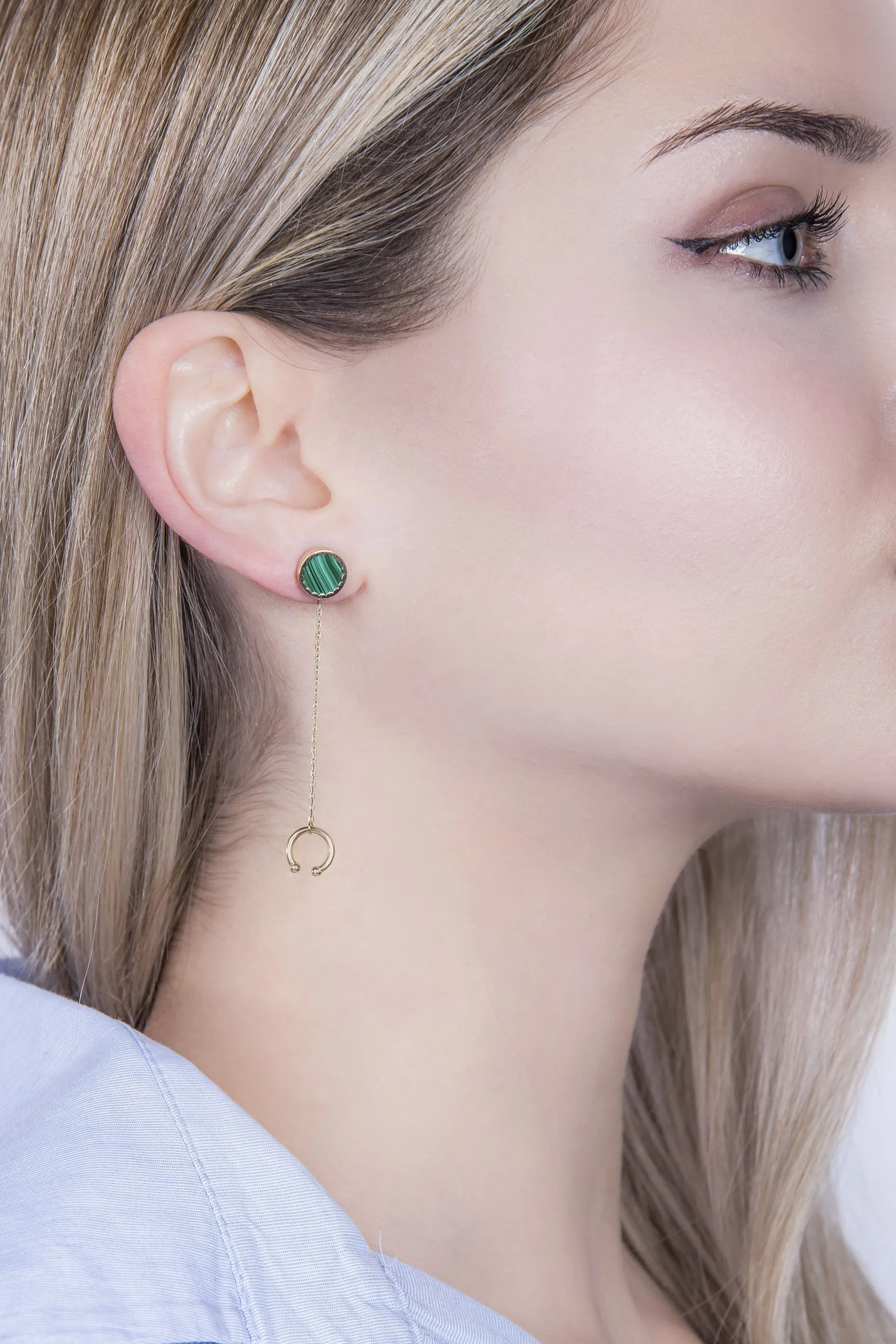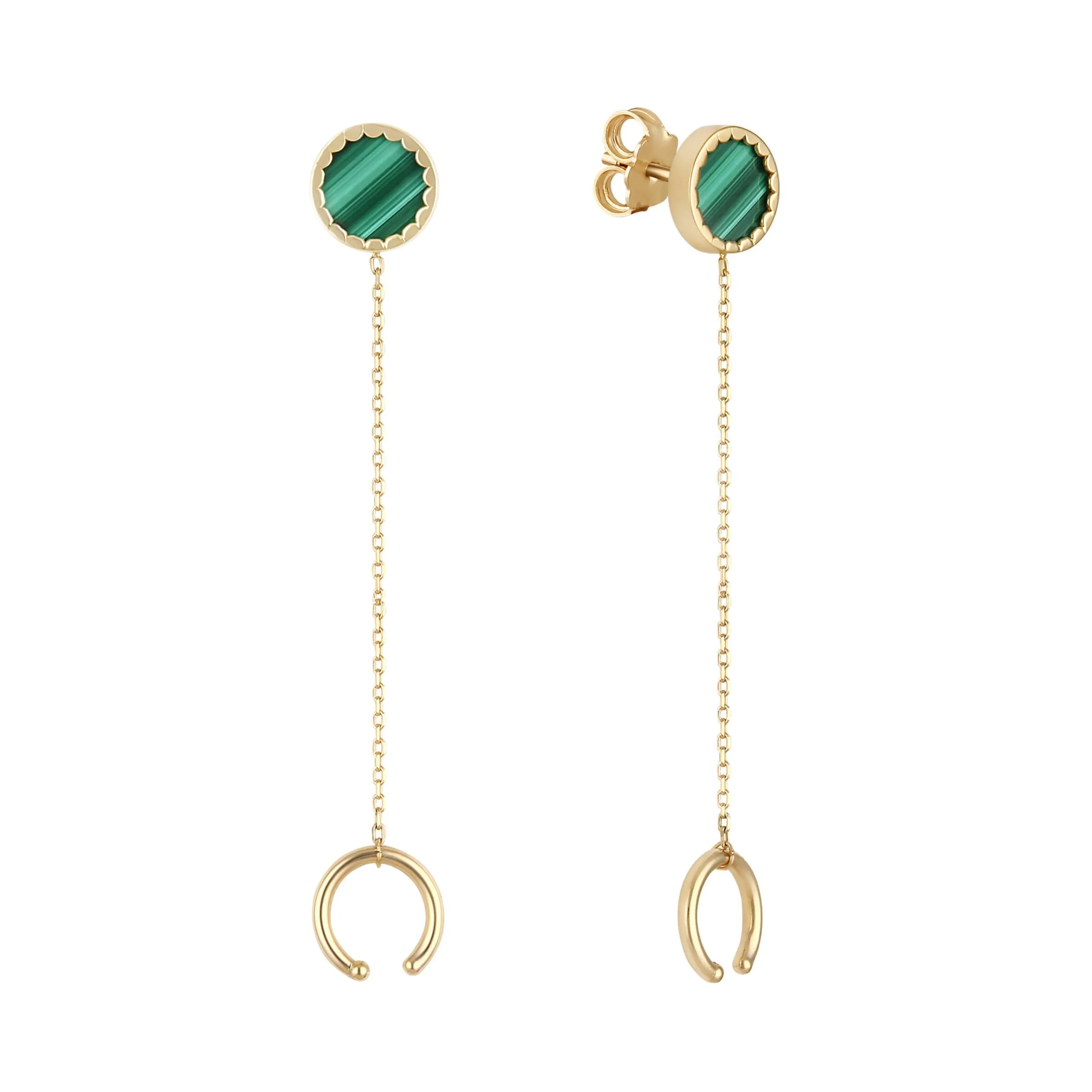 Moderan dizajn nalazi se u visećim Moon Shine Green naušnicama. Izrađene od 14 kt žutog zlata u obliku kruga koji je ispunjen dragim kamenom malahitom. Mogu se lako kombinirati u svakodnevnim situacijama.