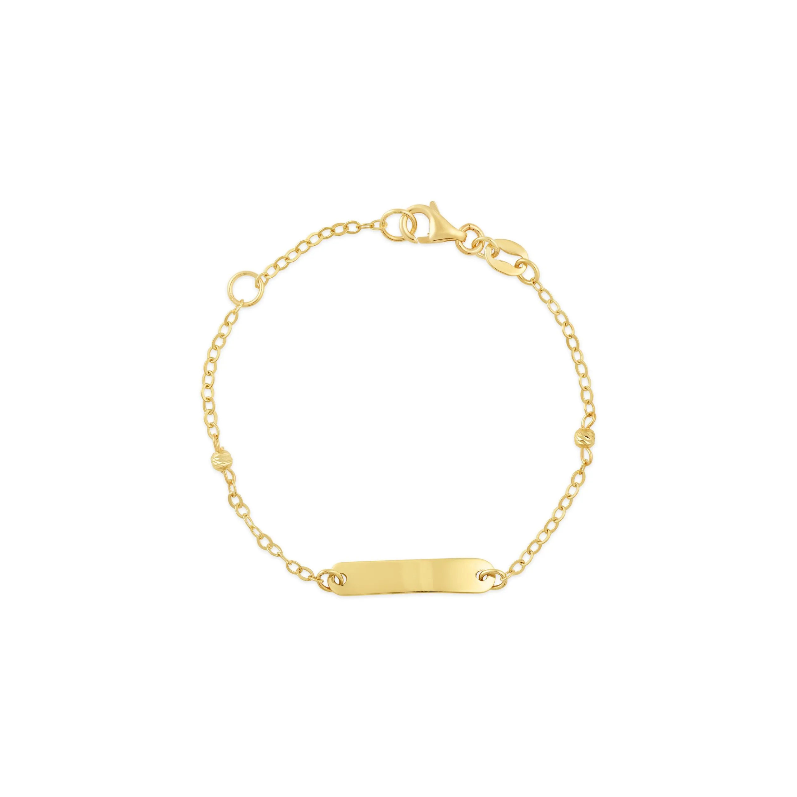 Name Bar zlatna narukvica dječja je narukvica izrađena od 14 kt žutog zlata, a karakterizira ju pločica koja omogućuje personaliziranje ovog komada nakita. Name Bar zlatna narukvica duga je 11 cm, dok pločica iznosi 2 cm, a sama narukvica nudi dodatak produljenja od 2 cm. Naručite Name Bar zlatnu narukvicu putem web shopa Zlatarne Dodić i poklonite nekome originalan komad nakita.