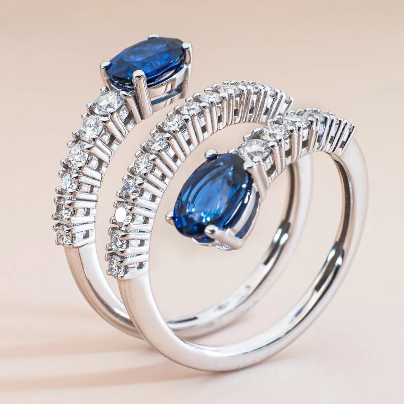 Neptune zlatni prsten na svojim krajevima sadrži dva draga kamena plave boje i baršunastog sjaja, a cijelim gornjim dijelom prstena protkan je nježnim dijamantima koji ih lijepo povezuju. Izrađen je od 18 kt bijelog zlata. Krasi ga bezvremenska ljepota i kvaliteta temeljena na 50-ogodišnjoj tradiciji izrade zlatarne Dodić.