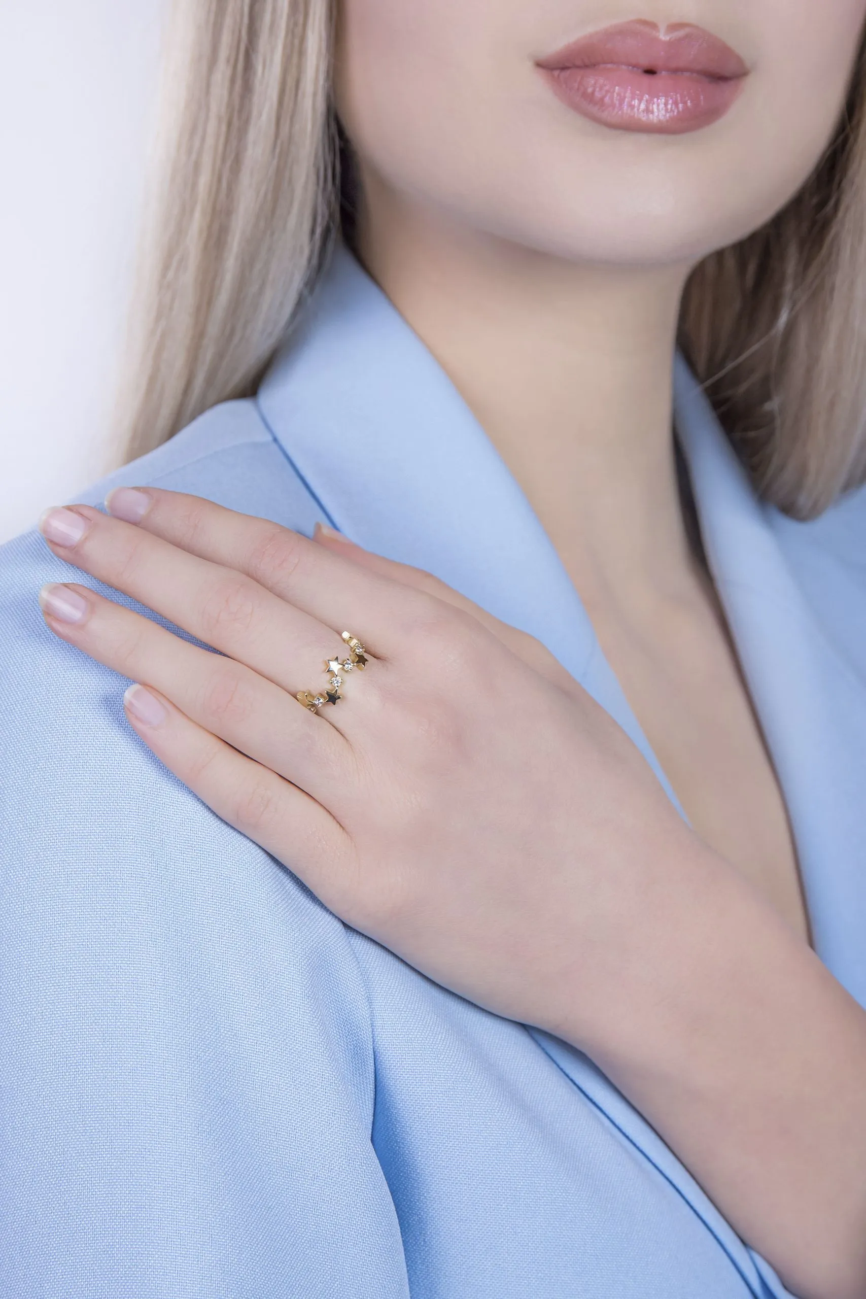 Moderan dizajn Night Sky zlatnog prstena nalazi se u razigranim zvjezdicama složenim u nepravilnom nizu i sitnim cirkonima koji ga krase. Zbog jednostavnosti idealan za svakodnevne prilike.