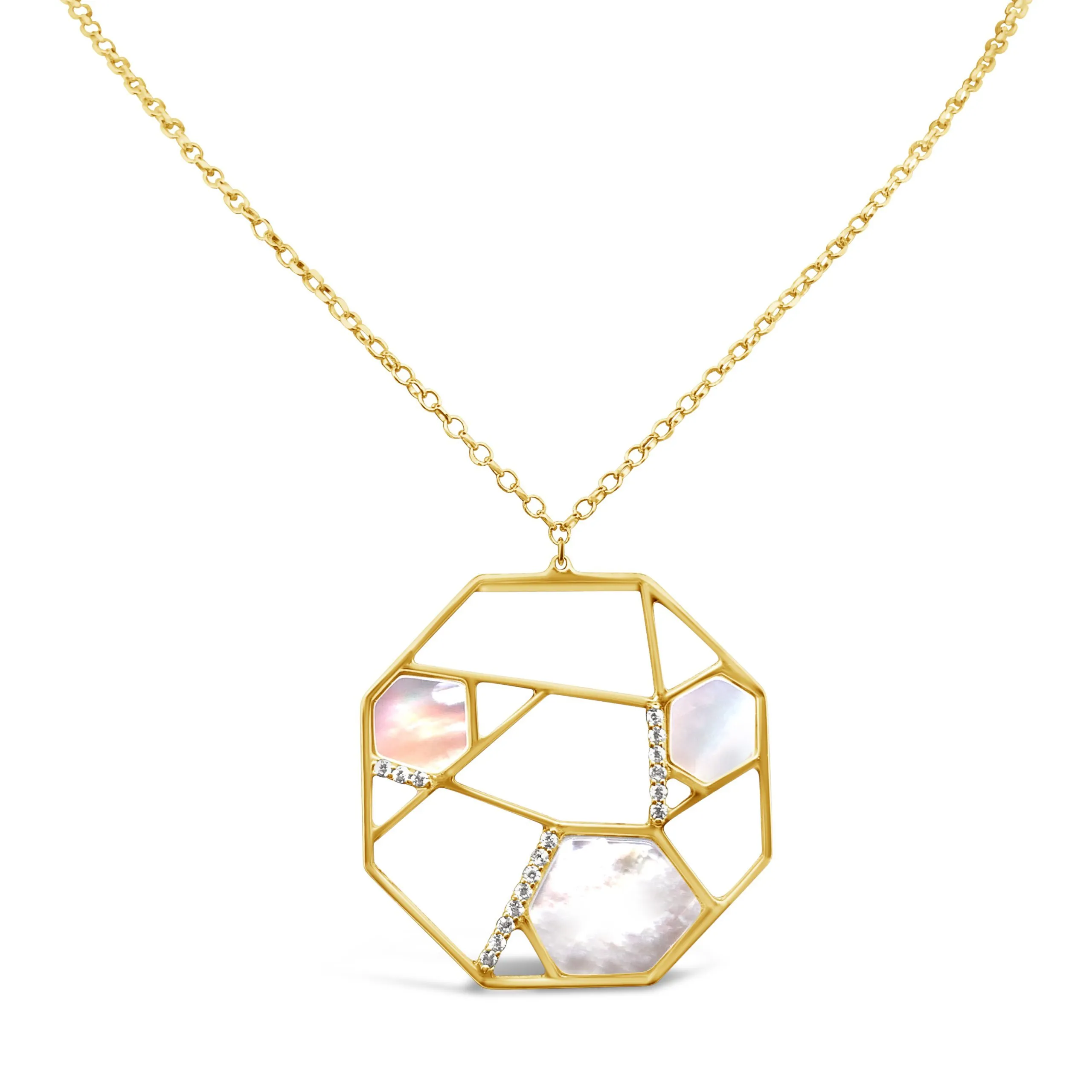 Octo ogrlica zlato sjajan je spoj zlata i nježnog sedefastog sjaja! Moderan dizajn osmerokuta pun je pogodak za trendsetterice!