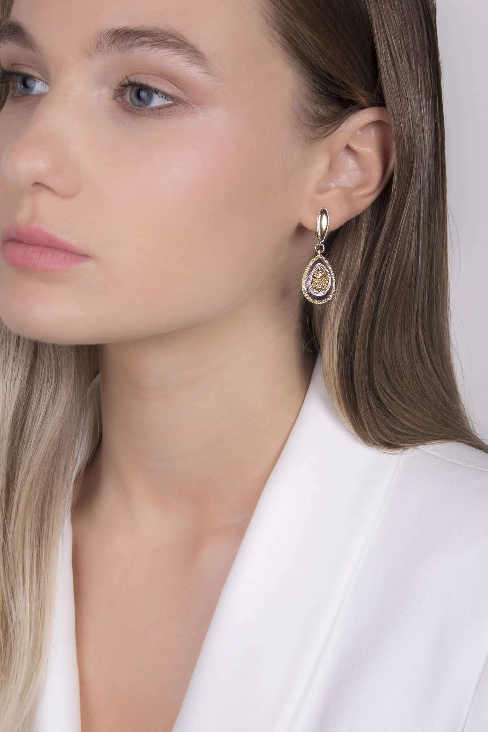 Besprijekoran glamurozni dizajn ispričan u naušnicama u obliku suze. 14 kt žuto zlato u jedinstvenom dizajnu u obliku suze s centralnim cirkonom za moderan izgled. Visina 3,5 cm. Dostava na kućnu adresu.