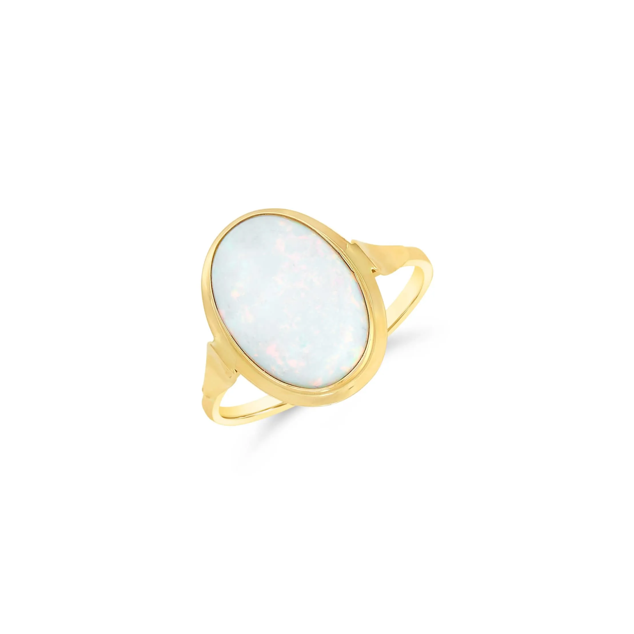 Opal Essence zlatni prsten čaroban je komad nakita koji se, svojim opalom, u igri sa svjetlom, može izjednačiti s najdubljim i najbogatijim bojama slikara. Ovaj prsten, izrađen od 14kt žutog zlata u dimenziji od 1,5 cm, osvaja svojom jedinstvenošću. Opal u središtu prstena donosi suptilnu eleganciju, ističući vašu individualnost i sofisticiranost.