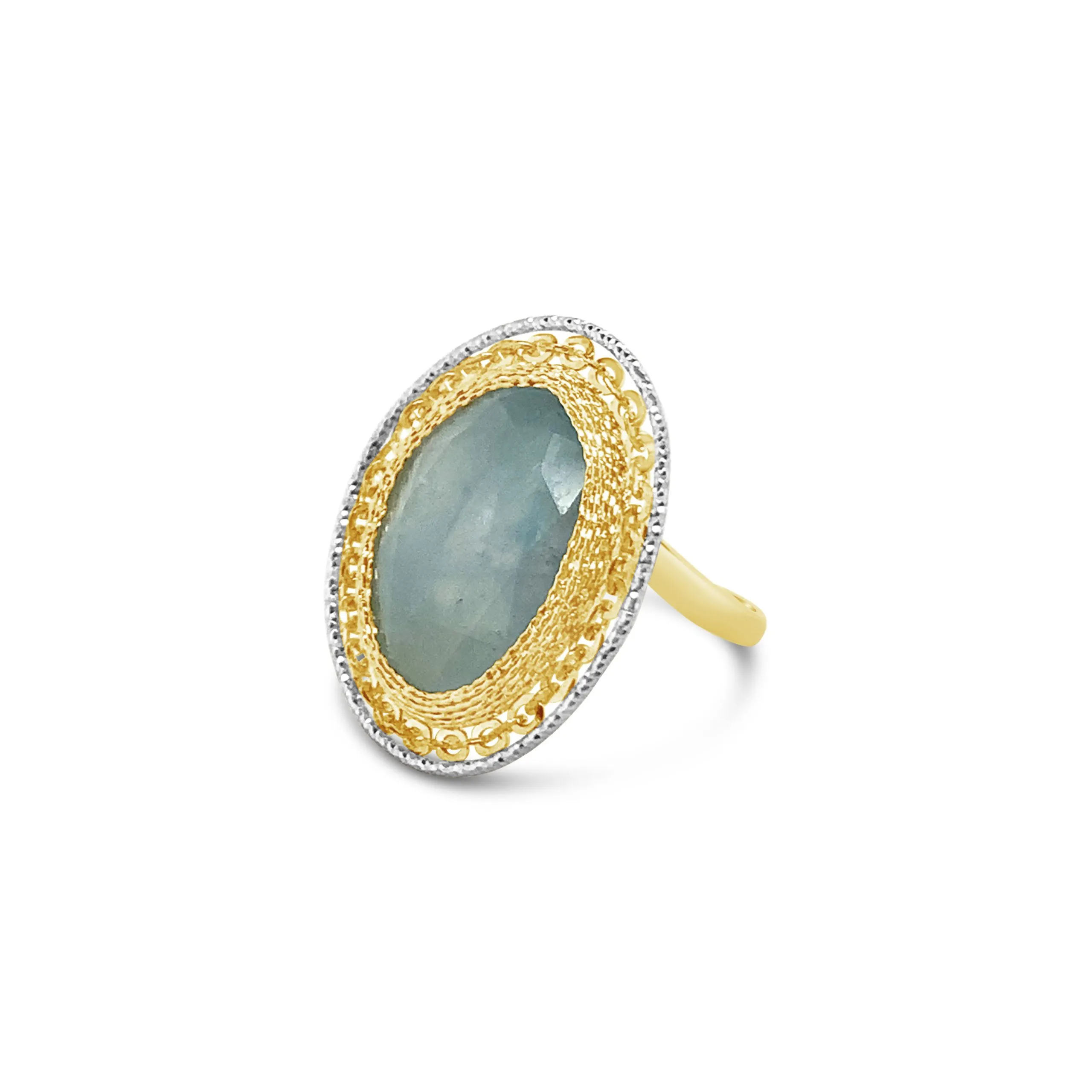 Besprijekoran glamurozni dizajn u ovalnom obliku. Prsten od 14 kt žutog zlata. Ukrašen obrubom od bijelog zlata, veličine 21mm x 24mm. Obogatit će svaki look u bilo kojoj prilici. Naručiti ga možete danas s dostavom na kućnu adresu.
