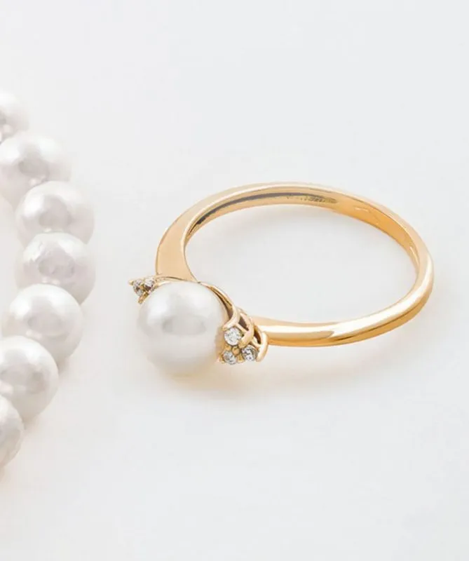 Pearl Wonder zlatni prsten s centralno istaknutim biserom i dodatkom cirkona nježno će svjetlucati baš poput Vaše ljubavi!