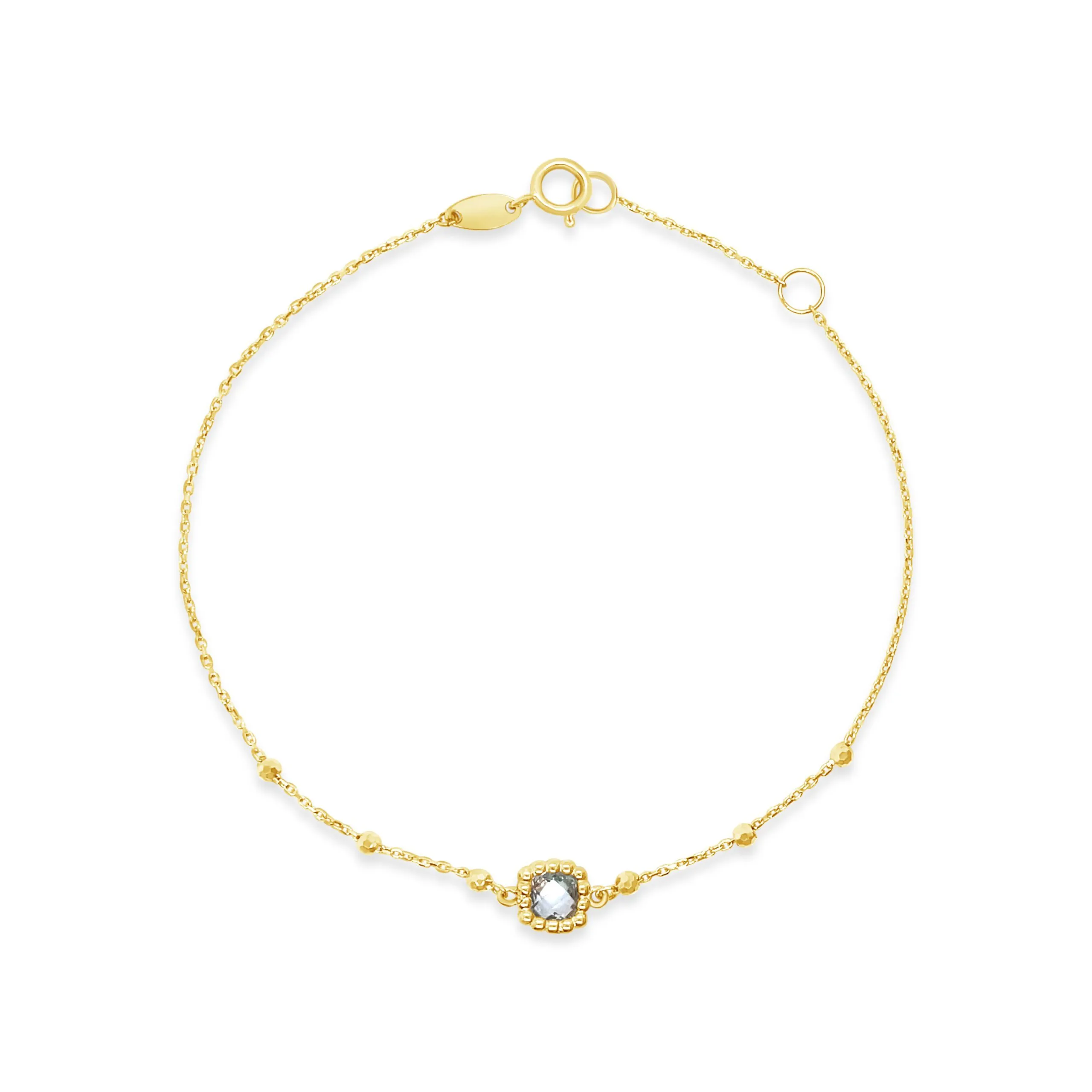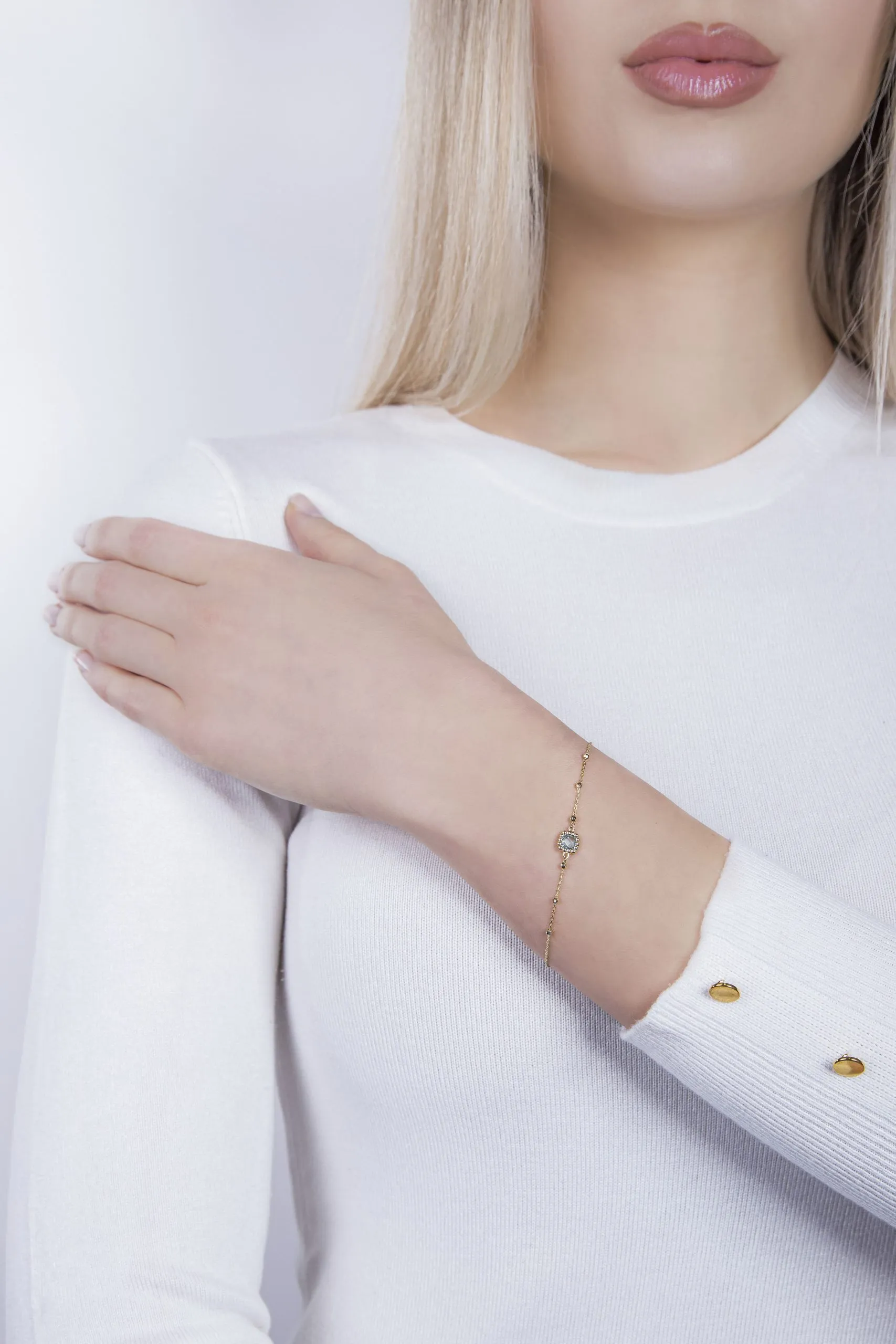 Poklonite sebi ili Vama dragoj osobi elegantnu Perfect Eye narukvicu. Izrađena je od 14 kt žutog zlata, ukrašena okruglim privjeskom koji je ispunjen plavim cirkonom. Zablistajte Već danas.