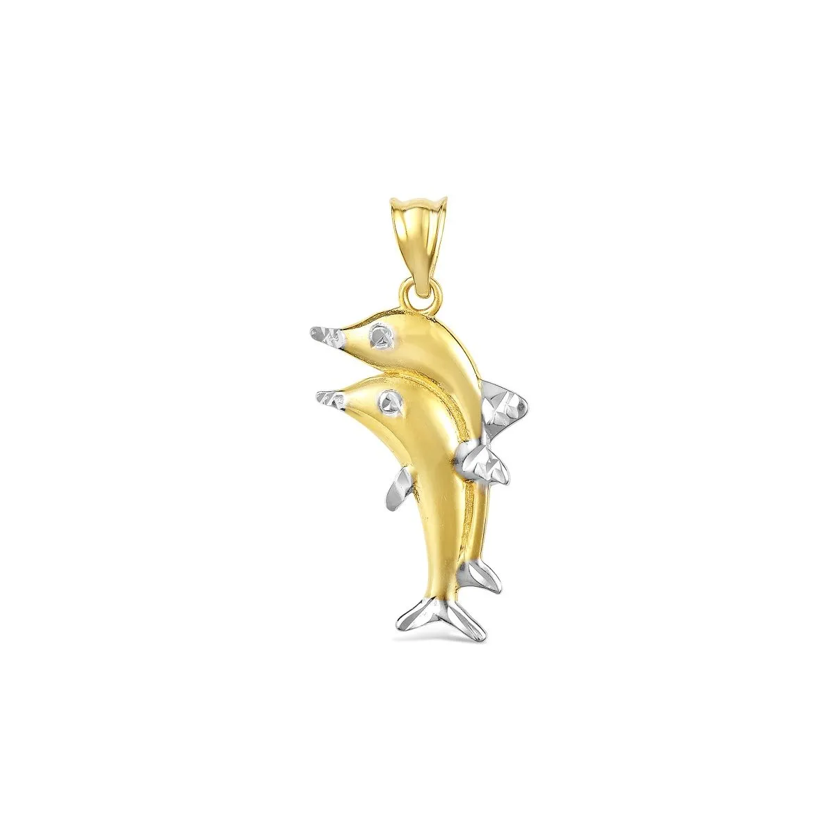 Istaknite svoju razigranu stranu uz Playful Dolphins privjesak od bijelog i žutog zlata. Savršen spoj elegancije i zaigranosti za sve koji žele nositi simbol slobode i ljepote.