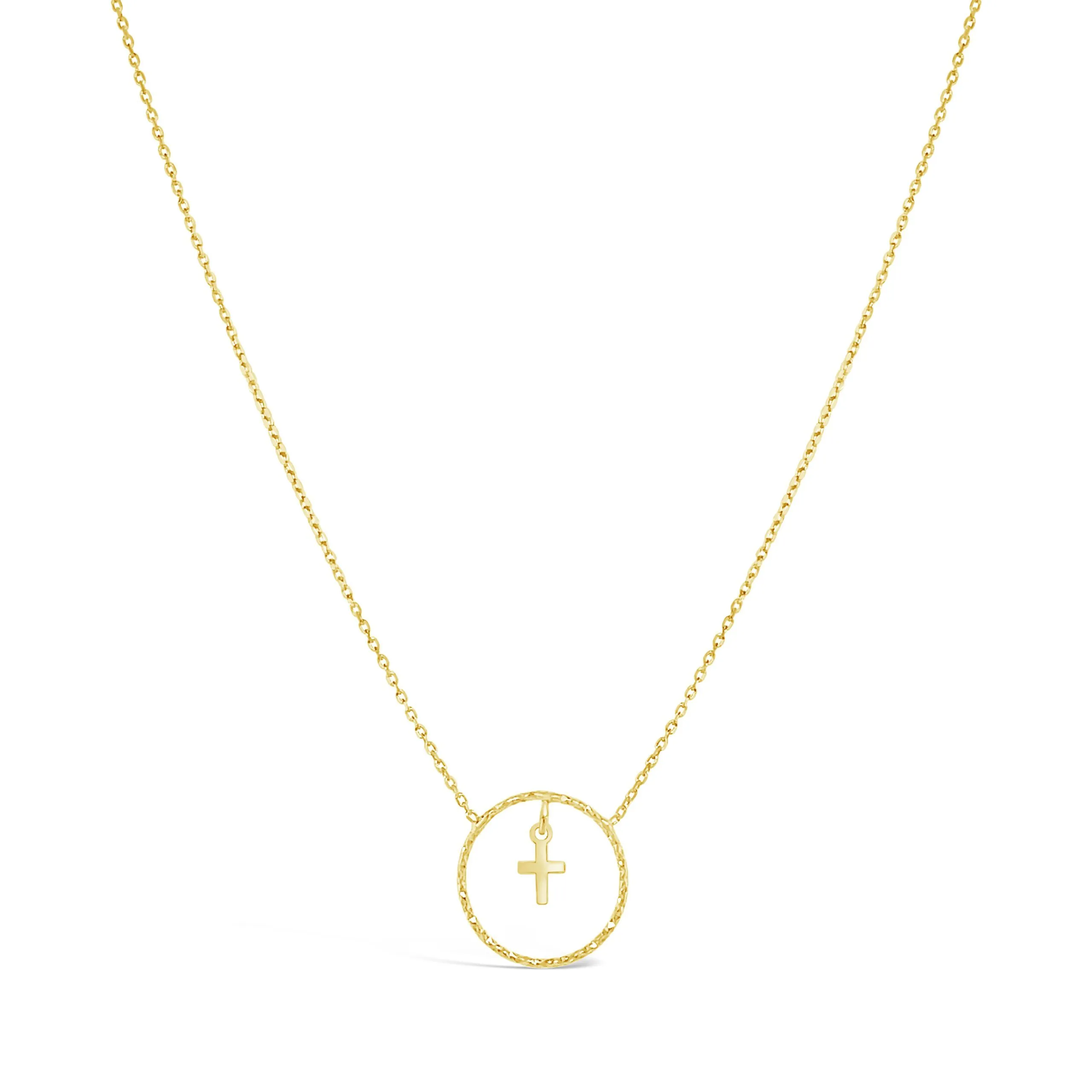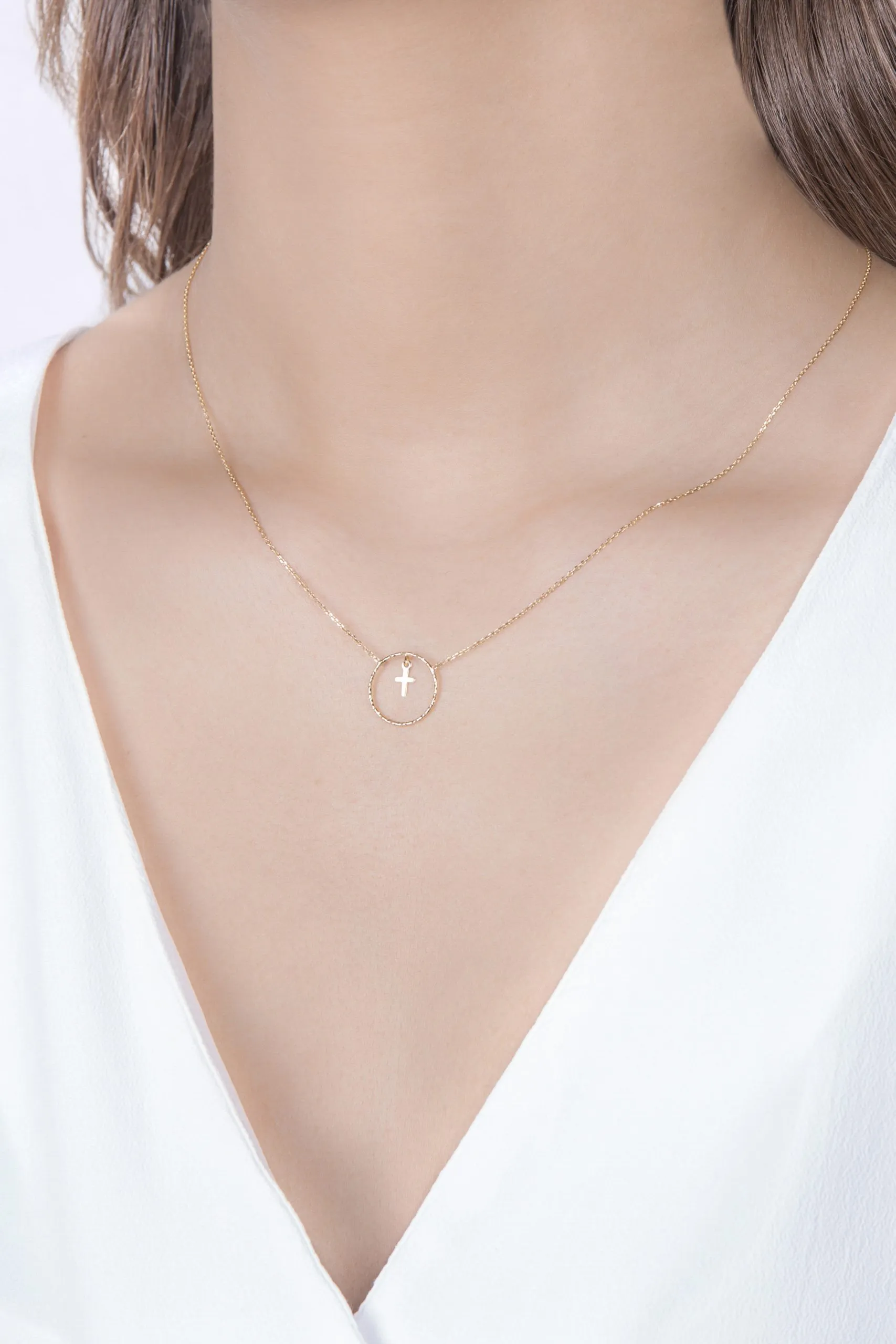 Jedinstveni dizajn Round Cross zlatne ogrlice prigodan je za svakodnevno nošenje. Izrađena je od 14 kt žutog zlata. Ukrašena je privjeskom u obliku kruga unutar kojeg se nalazi križ. Uz ovu ogrlicu neka mir, blagostanje i ljubav uvijek budu uz Vas ili Vaše najdraže.