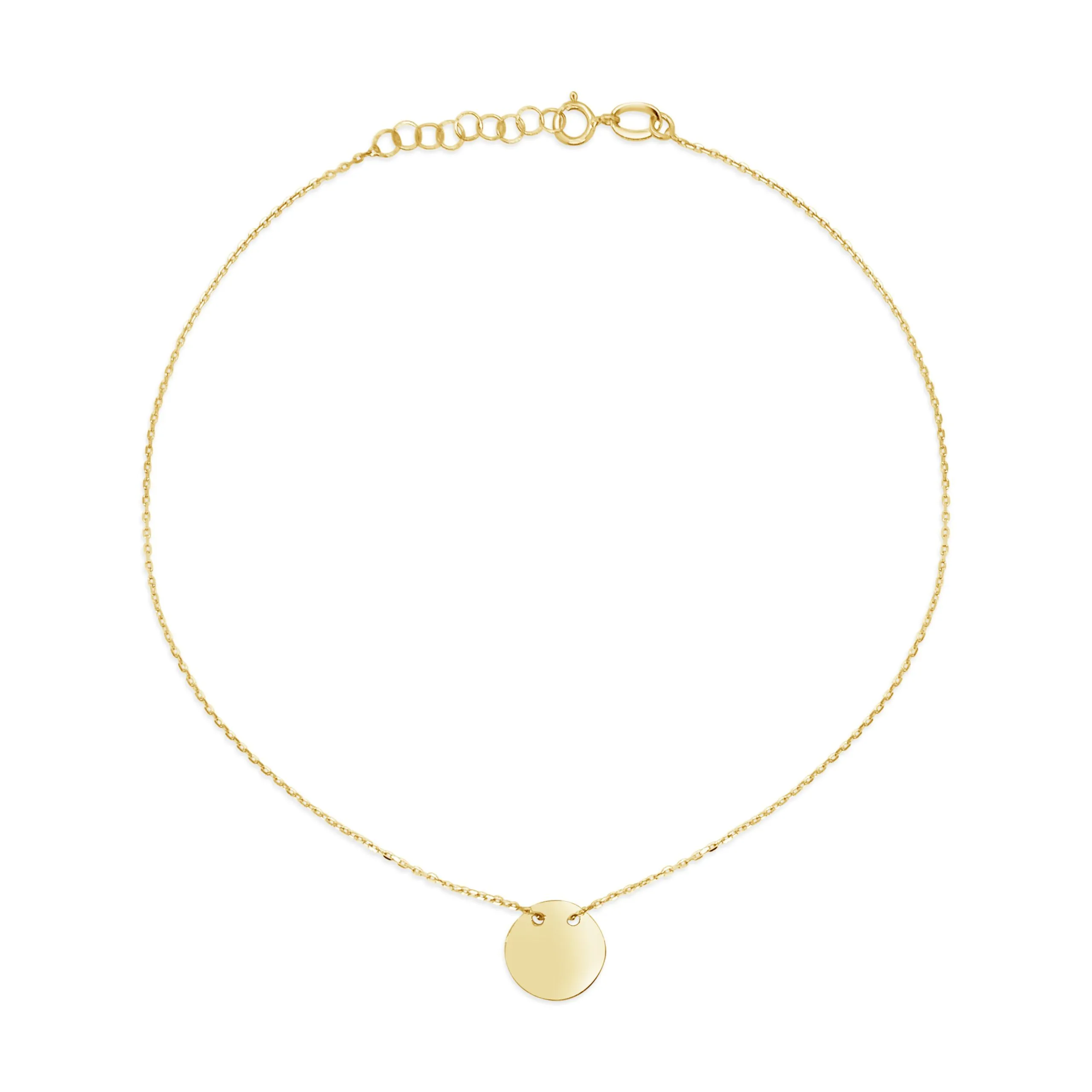 Round Plate nanogica od 14 kt žutog zlata. Izrađena je od niza sitnih okruglih karika. Ukrašava ju okrugla pločica na koju se može staviti gravura. Naručite dostavu na kućnu adresu.