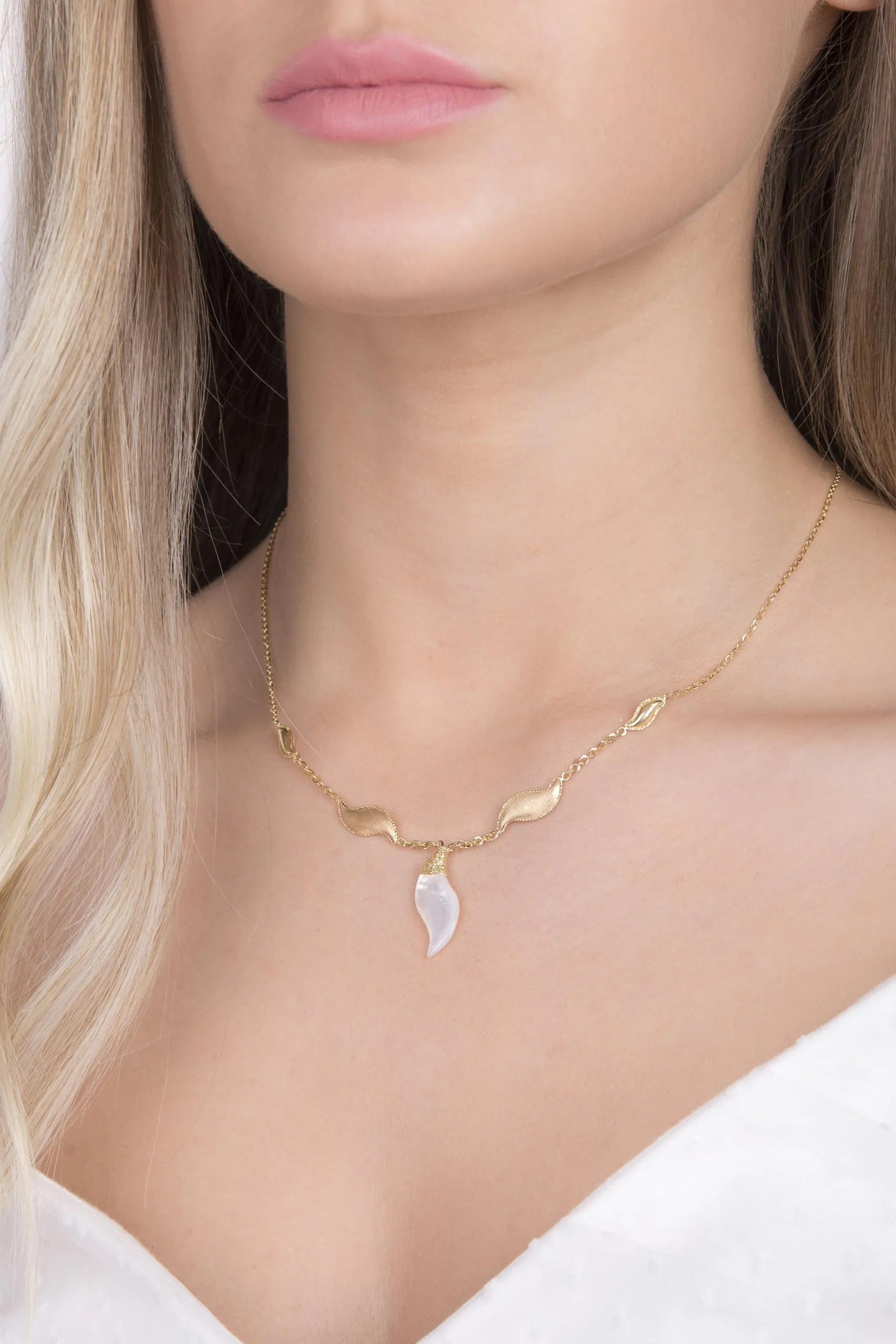 Sea Sparkle zlatna ogrlica skladna je kombinacija 14 kt žutog zlata uz nježan sedef kao ukras na privjesku! Za damu koja želi zasjati – Sea sparkle zlatna ogrlica savršen je izbor!
