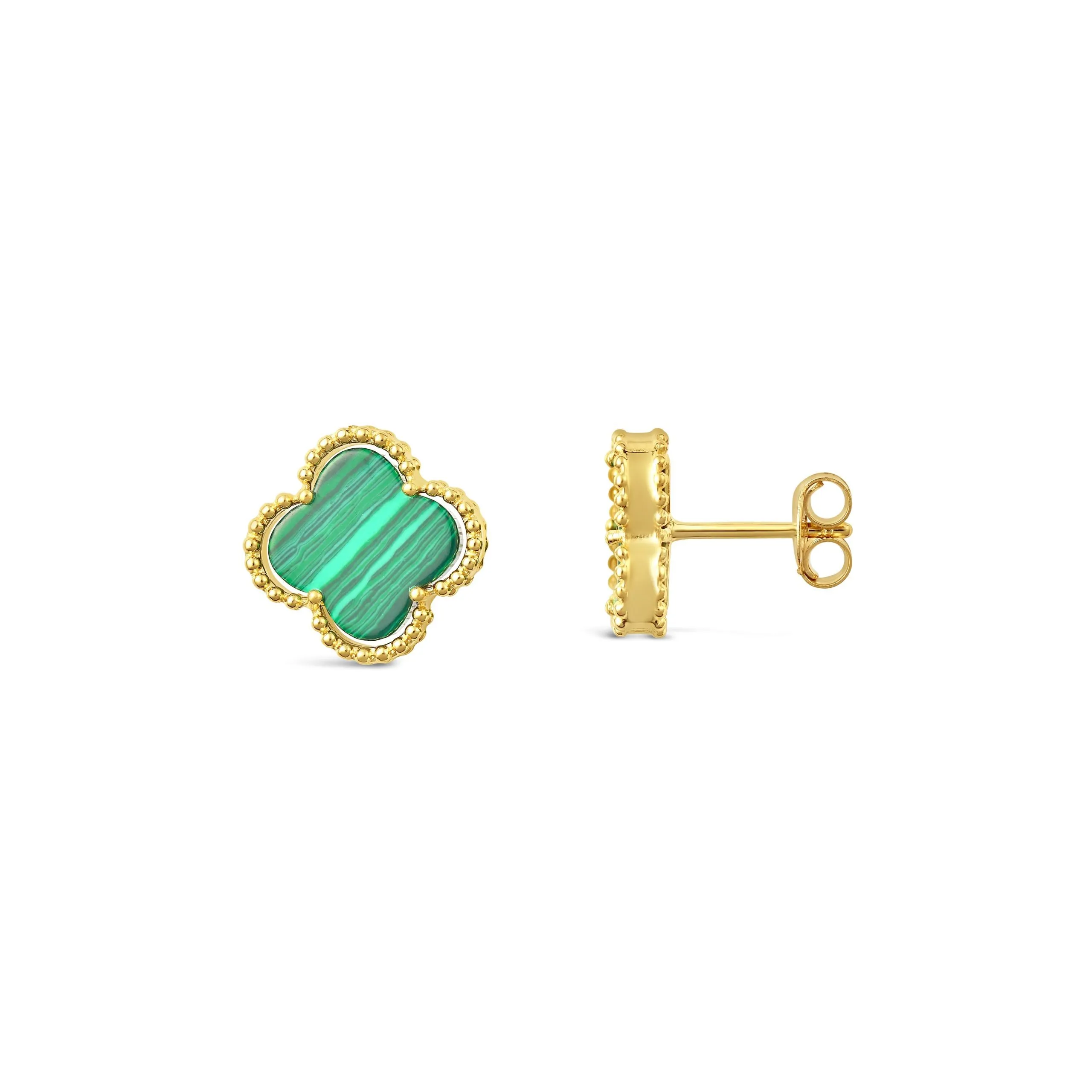 Sleek Clovers zlatne naušnice s malahitom