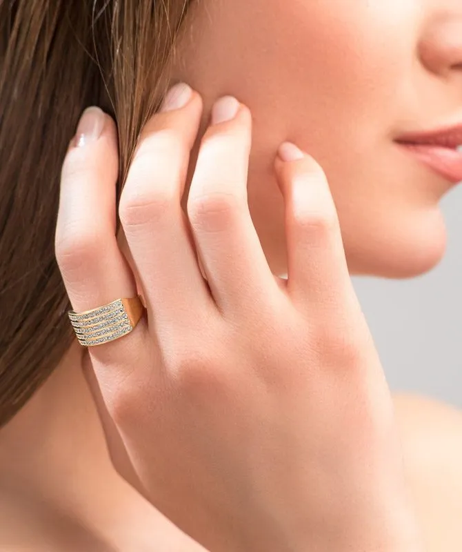 Starlight zlatni prsten nježno sjaji uz lijepe cirkone! Izrađen od 14 kt žutog zlata prekrasan je modni dodatak za prave ljubiteljice nakita.