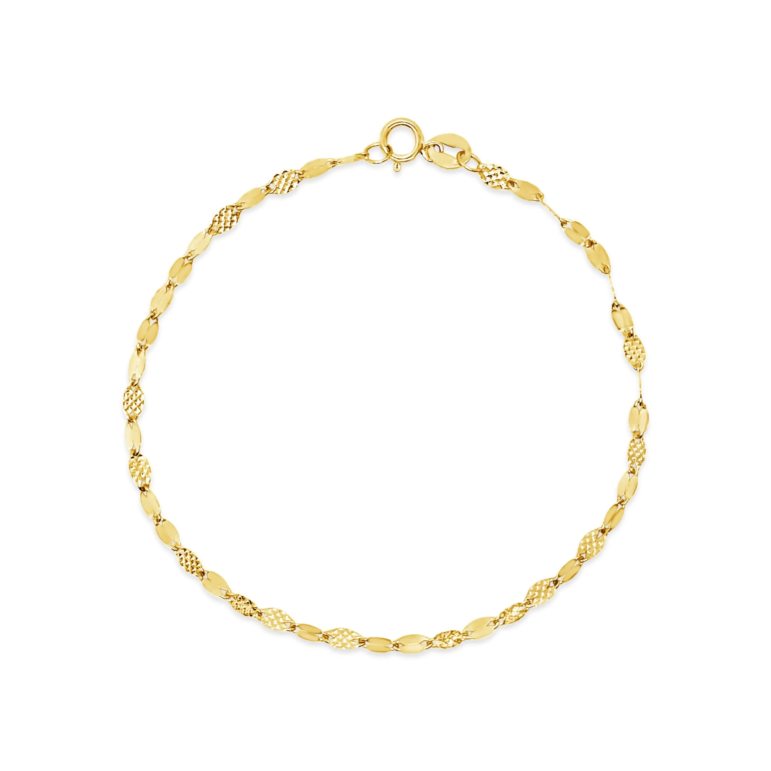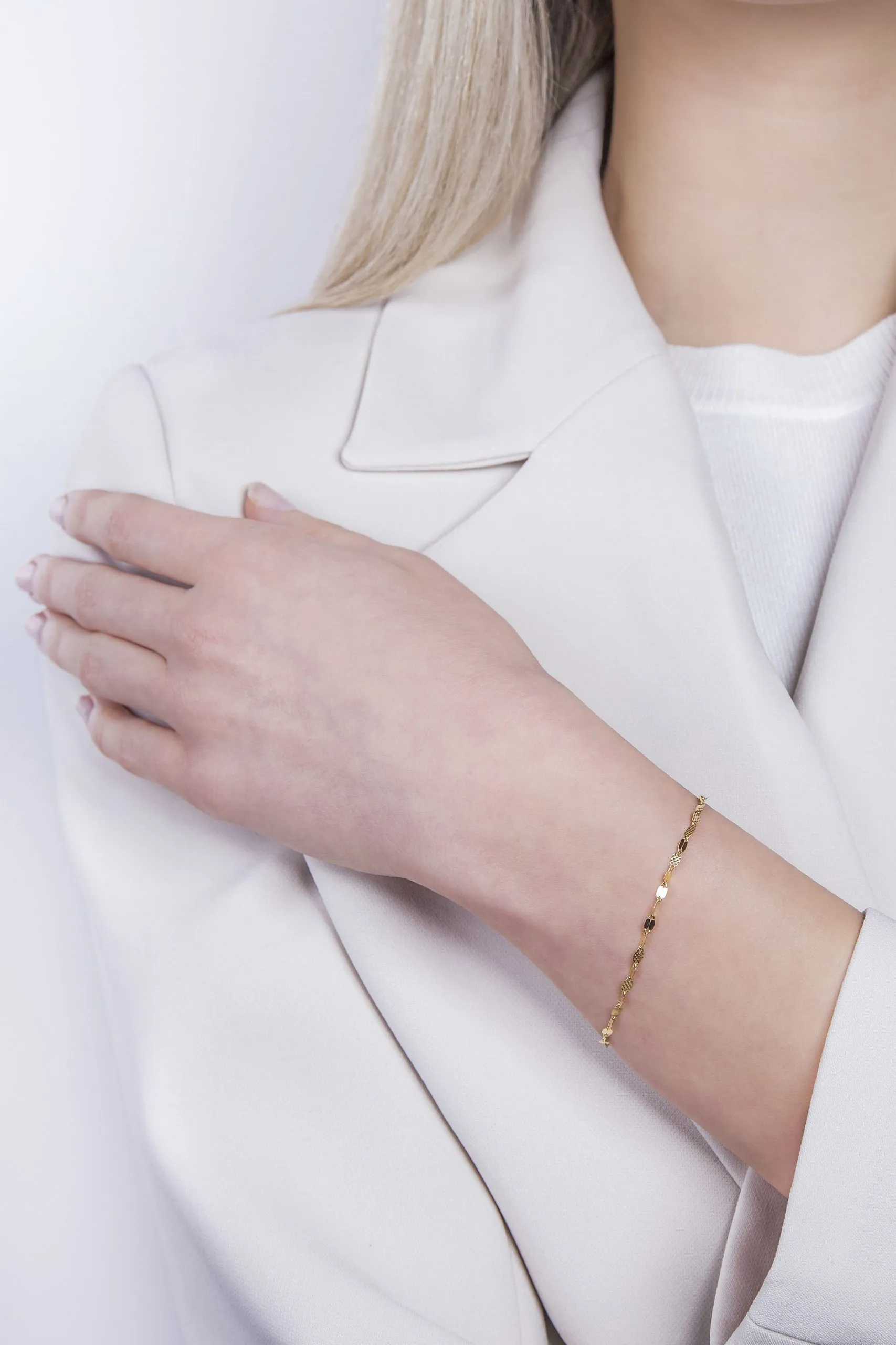 Ovalne pločice u nizu čine savršen spoj elegancije i jednostavnosti. Style zlatna narukvica uklopit će se u svakodnevne i svečanije prigode. Već danas može biti Vaša.
