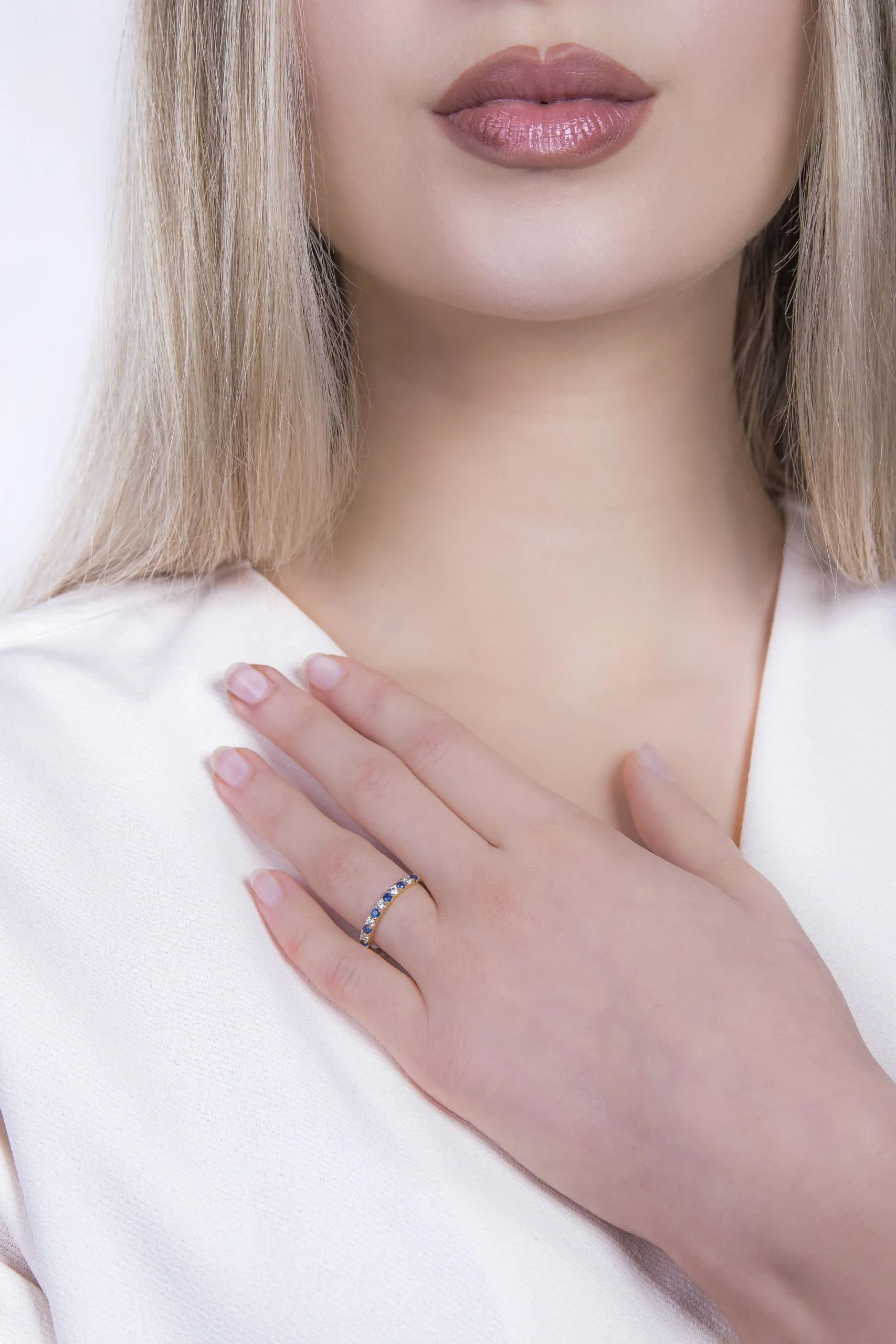 Summer Night prsten izrađen od 14 kt žutog zlata. Zbog niza blještavih cirkona u plavoj boji dodatno će naglasiti Vašu eleganciju i profinjenost.