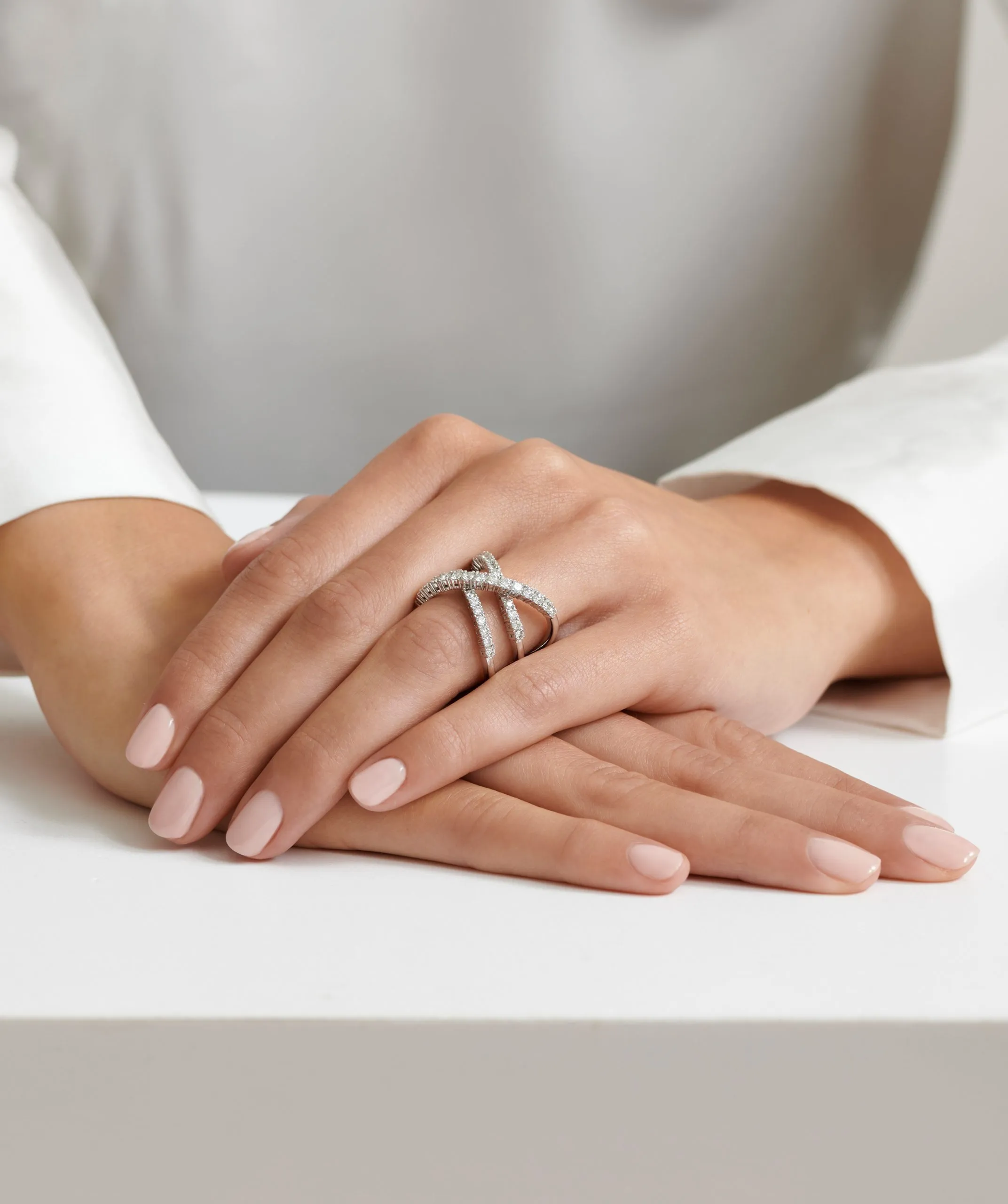Trinity Sparkle zlatni prsten s dijamantima izrađen je od 18-karatnog bijelog zlata. Isprepletene linije ispunjene okruglim dijamantima čine ovaj prsten posebnim komadom nakita.