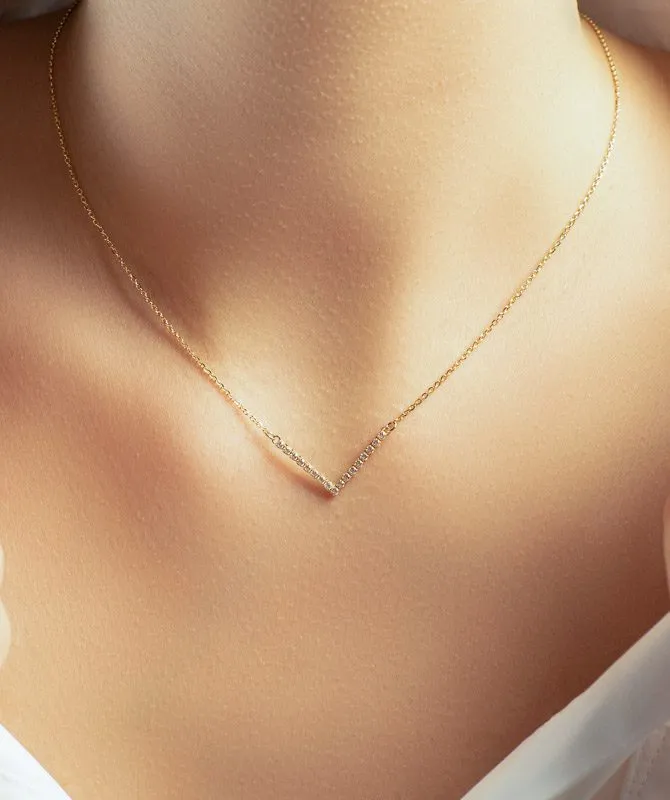 Value zlatna ogrlica izrađena je od 14 kt žutog zlata, a krasi ju privjesak u obliku slova v kojim su nanizani cikroni. Duljina ogrlice je 42 cm, a na nju je pričvršćena i ekstenzija koja omogućuje produljenje za 3 dodatna cm. Value zlatnu ogrlice naručite brzo i sigurno putem web shopa Zlatarne Dodić.