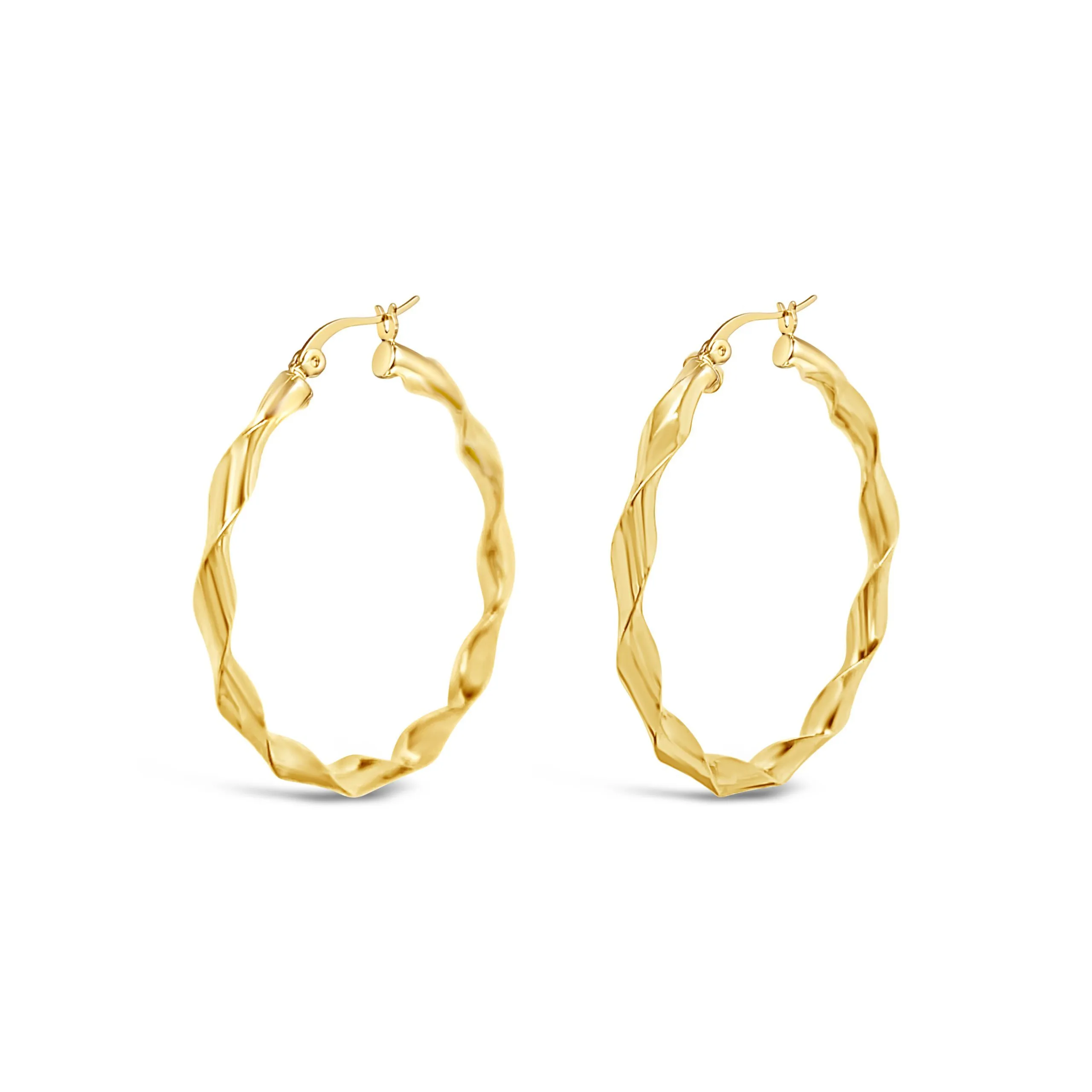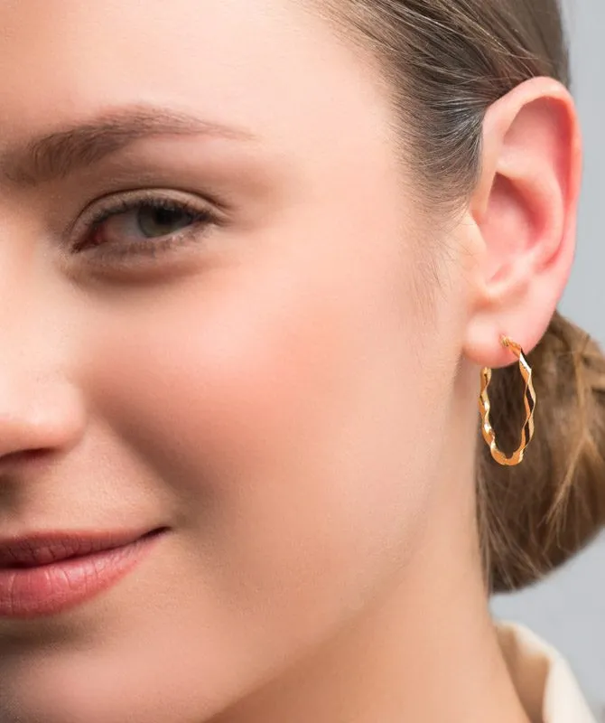 Wavy Hoops zlatne naušnice asociraju na tople zrake sunca protkane u valovima. Izrađene su od 14 kt žutog zlata. Okrugli dizajn promjera 2,5 cm.