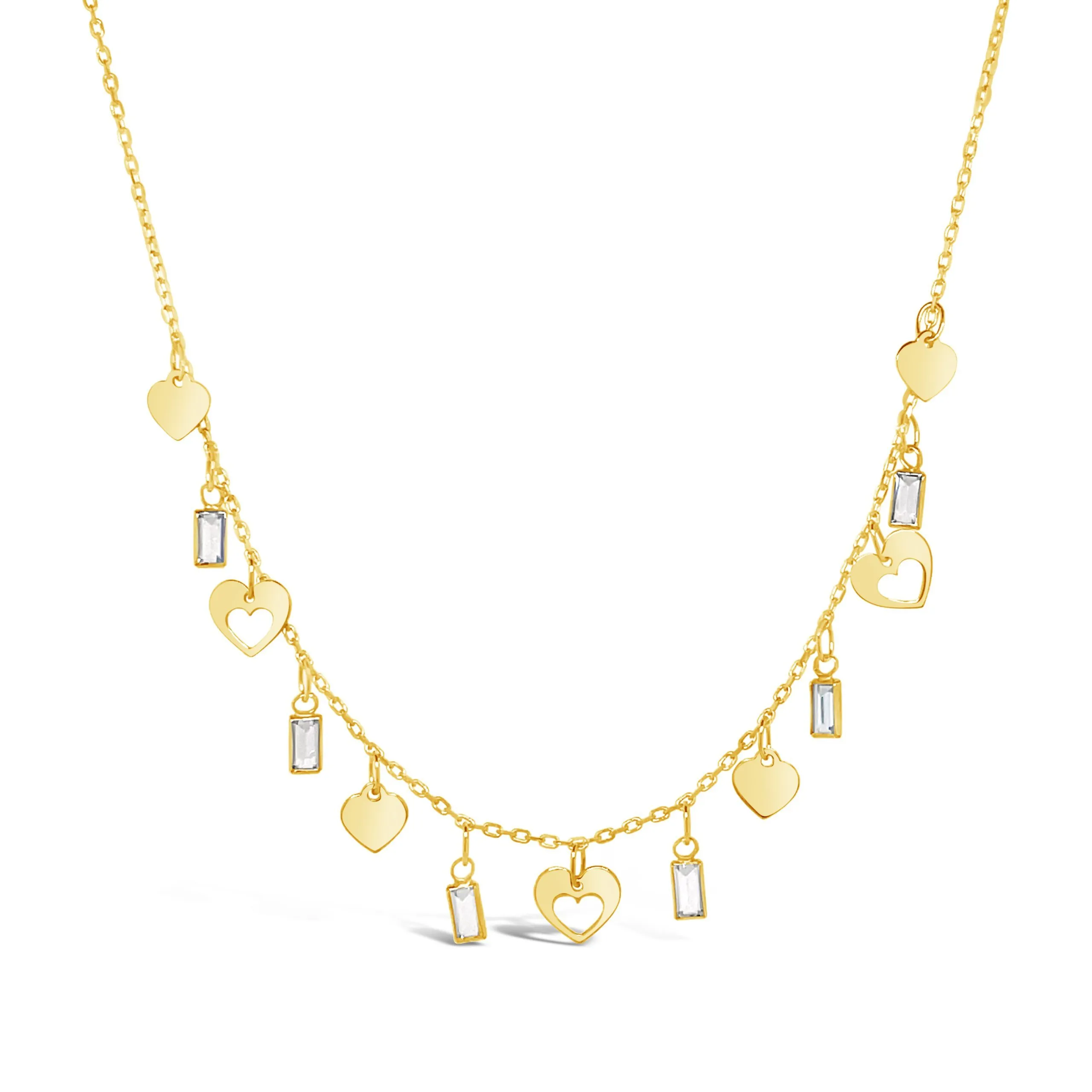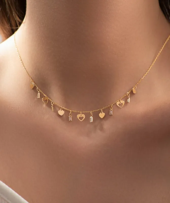 Wish zlatna ogrlica idealan je poklon za Vašu voljenu. Elegantna ogrlica ukrašena nizom blještavih cirkona i privjesaka u obliku srca može biti kako za večernje tako i za dnevne prilike.