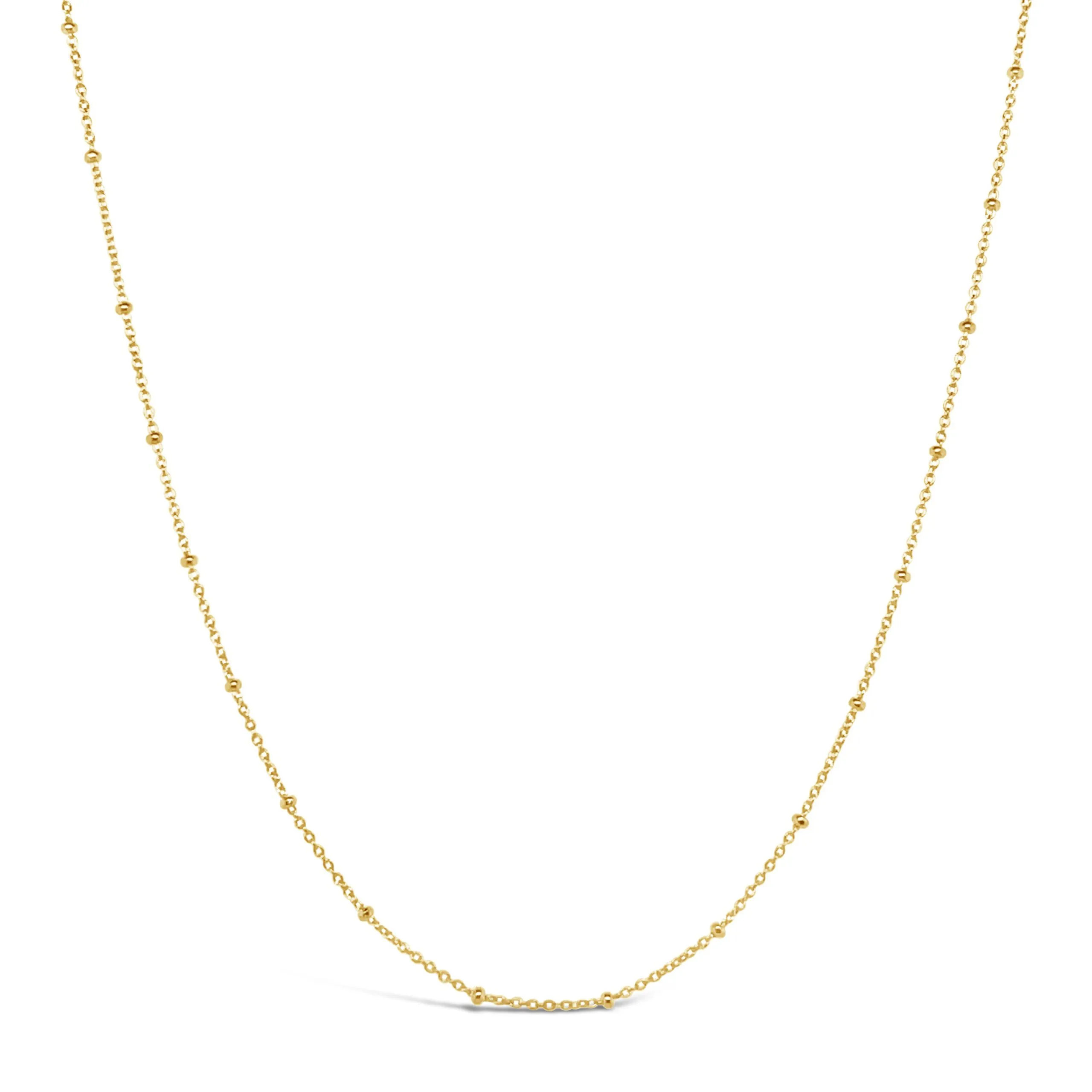 Delikatni Dot Chain zlatni lančić krase ukrasne kuglice i čine ga posebnim komadom nakita. Prikladan za nošenje uz privjeske ili samostalno. Izrađen od 14 kt žutog zlata, duljine 45 cm.